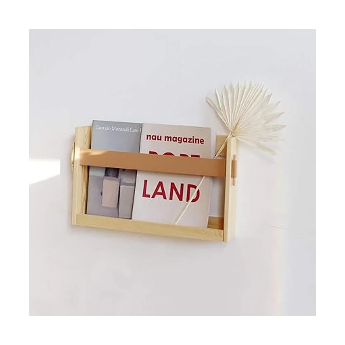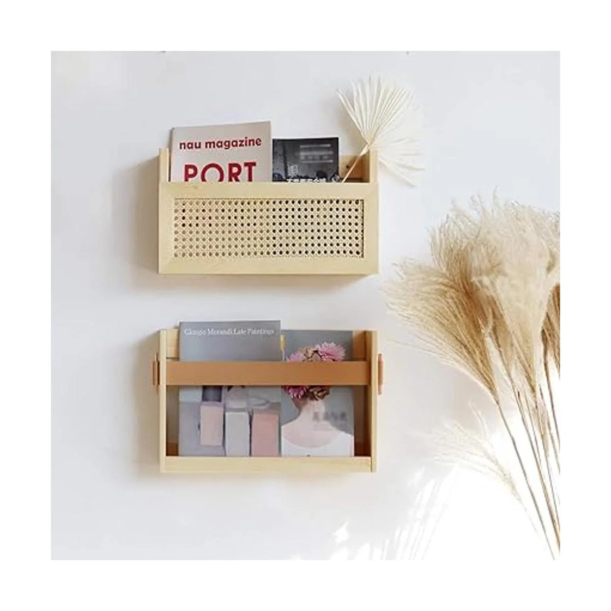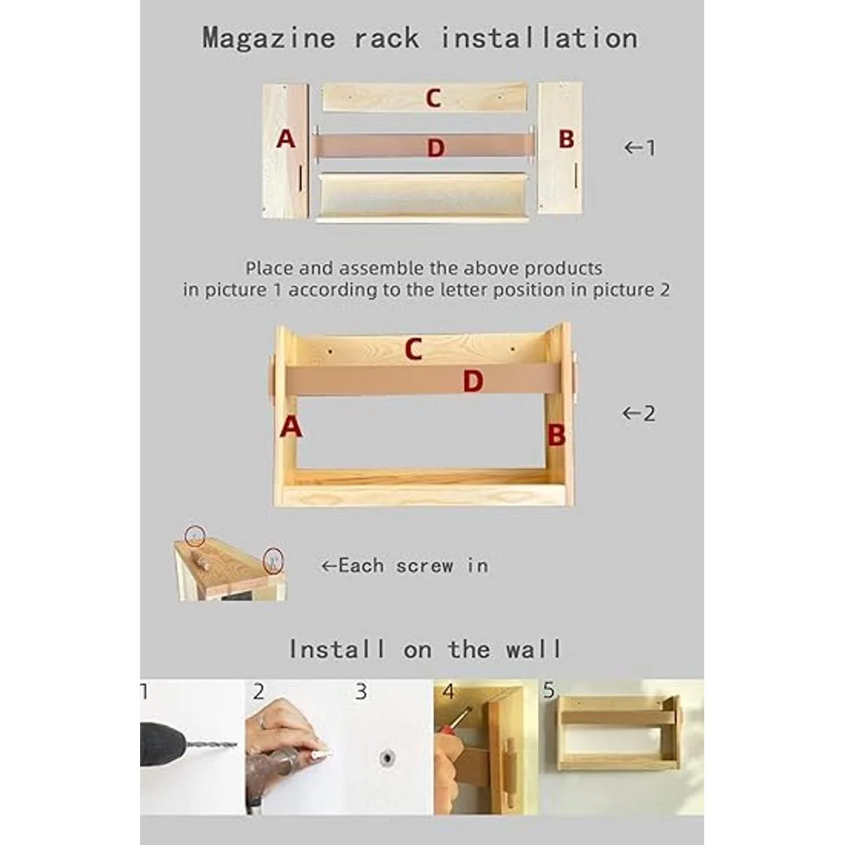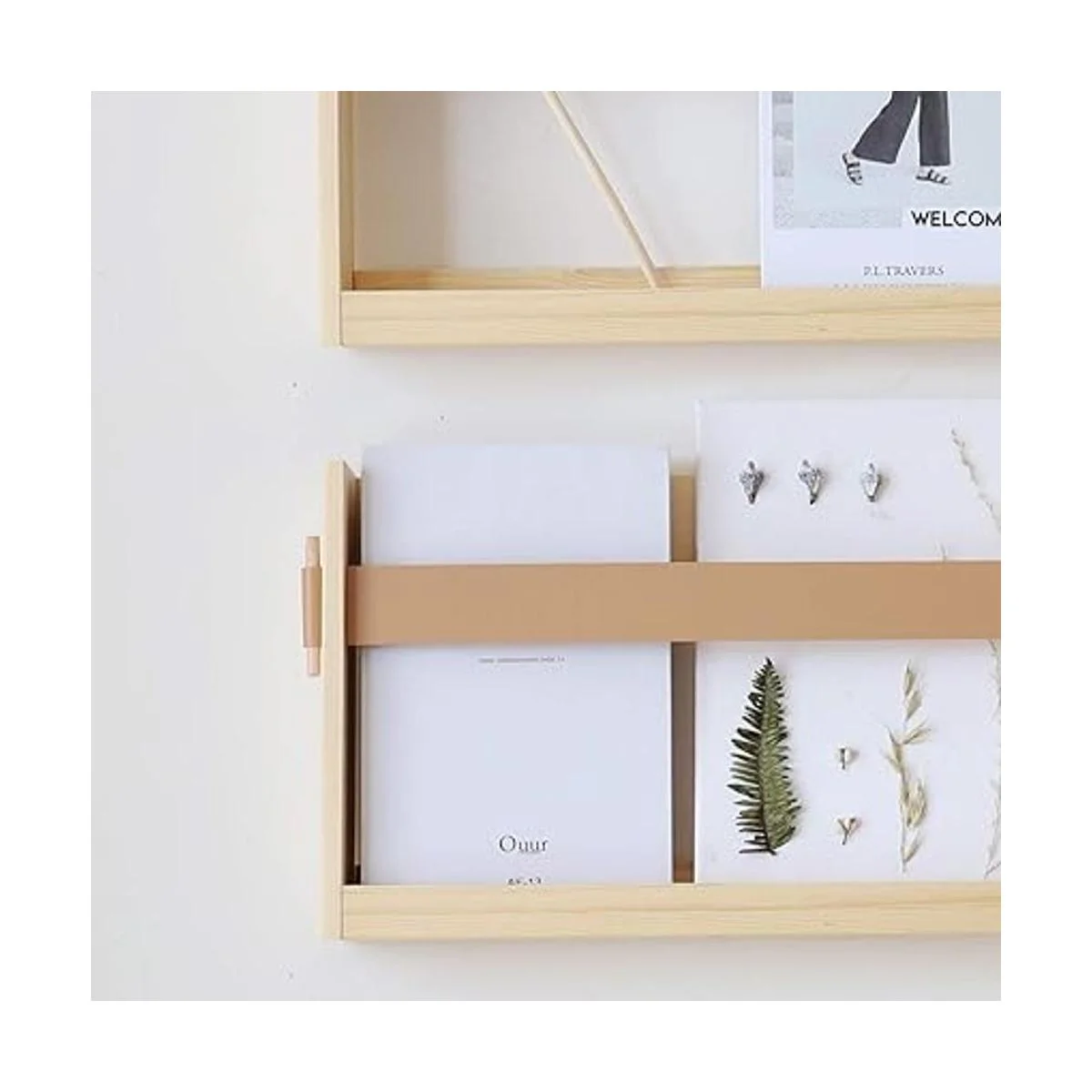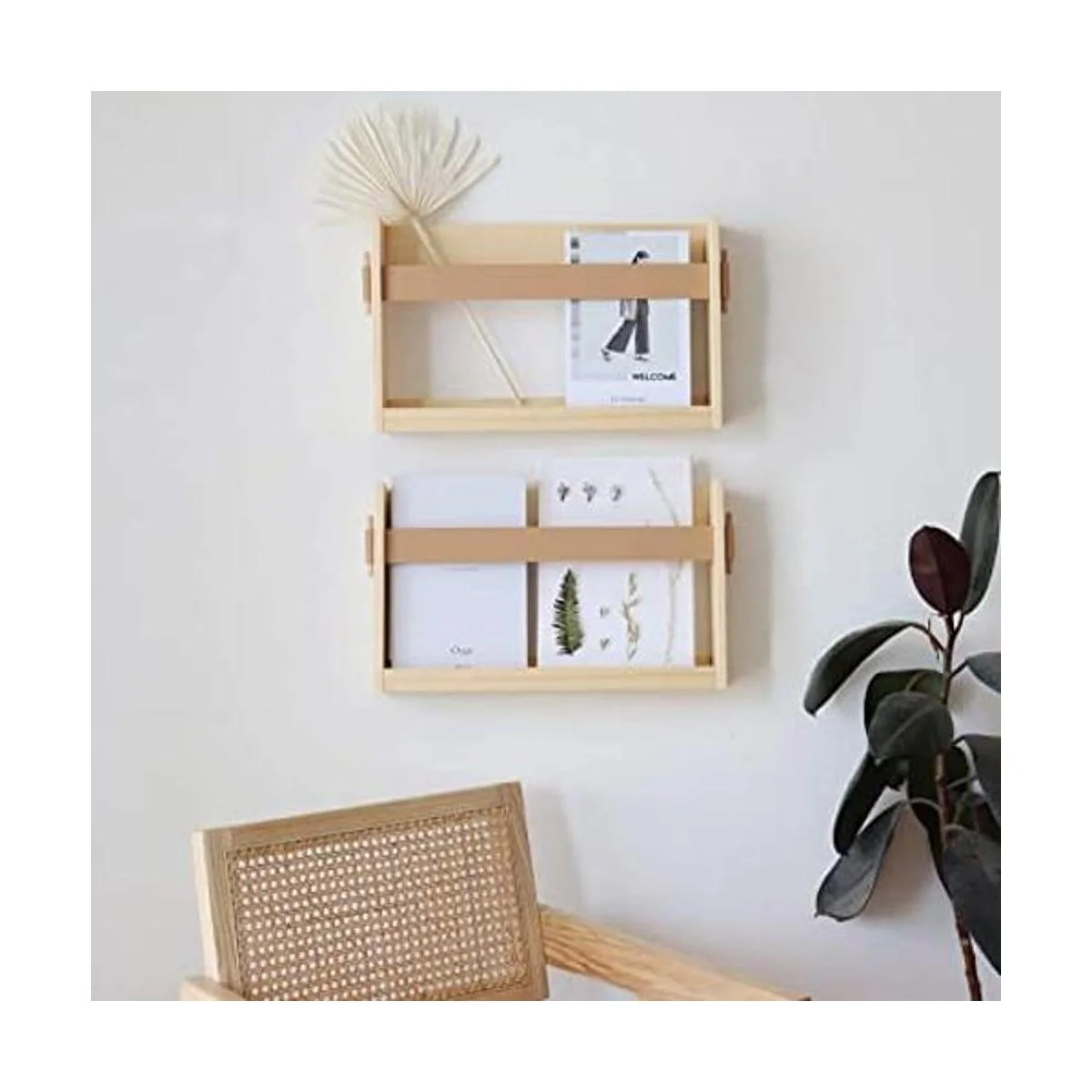 FIRADE Soporte para revistas de pared con correa de piel sintética, estante de revistas de madera, organizador de archivos para entrada, oficina, sala de estar, sala de espera, habitación de los niños, paquete de 2 17.3 x 3.5 x 10.6 pulgadas