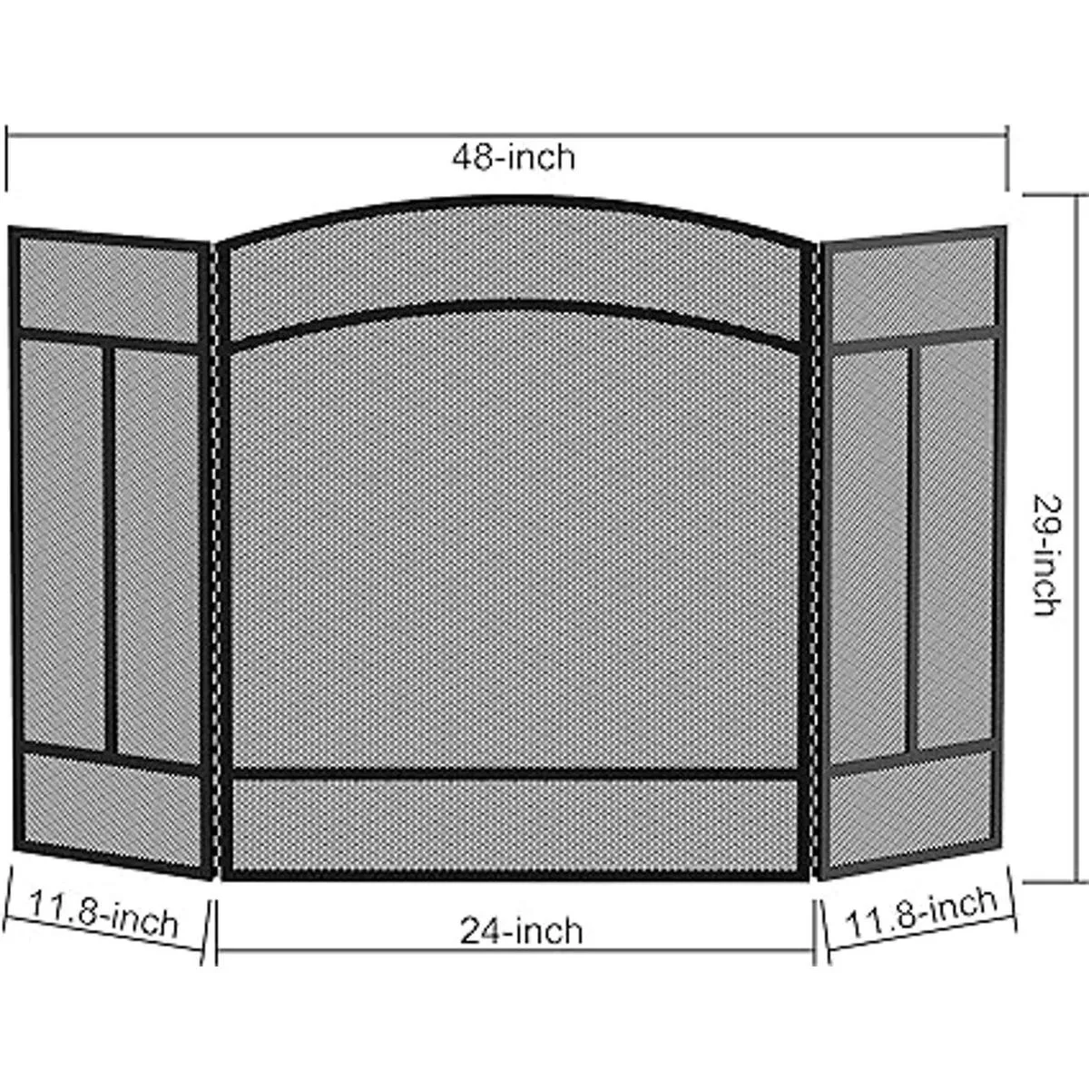 Fire Beauty Pantalla de chimenea de 3 paneles de hierro forjado de 48 pulgadas de largo x 29 pulgadas de alto, cubierta protectora de chispas negro