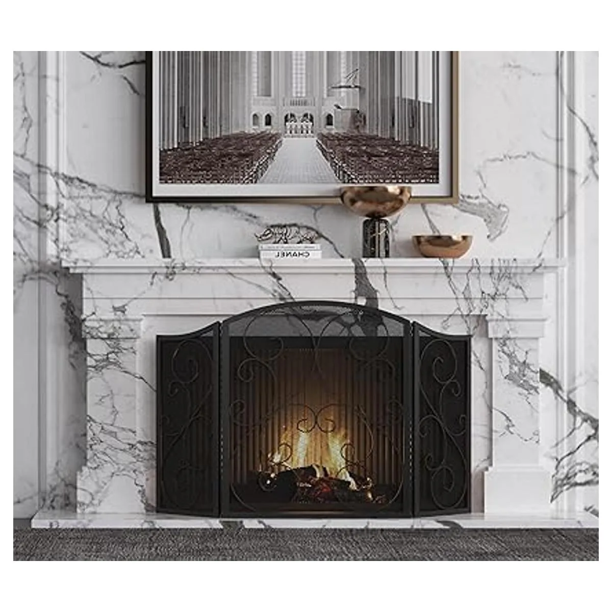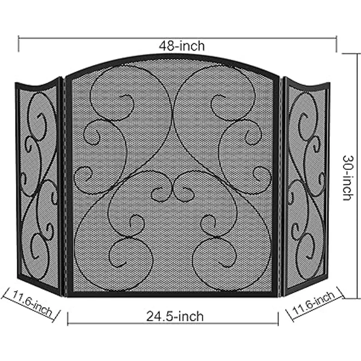 Fire Beauty Pantalla para chimenea, 3 paneles de hierro forjado de metal negro, 48 pulgadas de largo x 30 alto, cubierta protectora contra chispas negro
