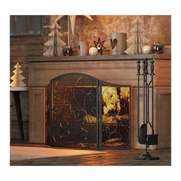 Pantalla de chimenea plegable: esta pantalla de 3 paneles se puede manipular según tus preferencias para la configuración perfecta frente a tu chimenea y plegar para un fácil almacenamiento en espacios compactos. No requiere montaje.