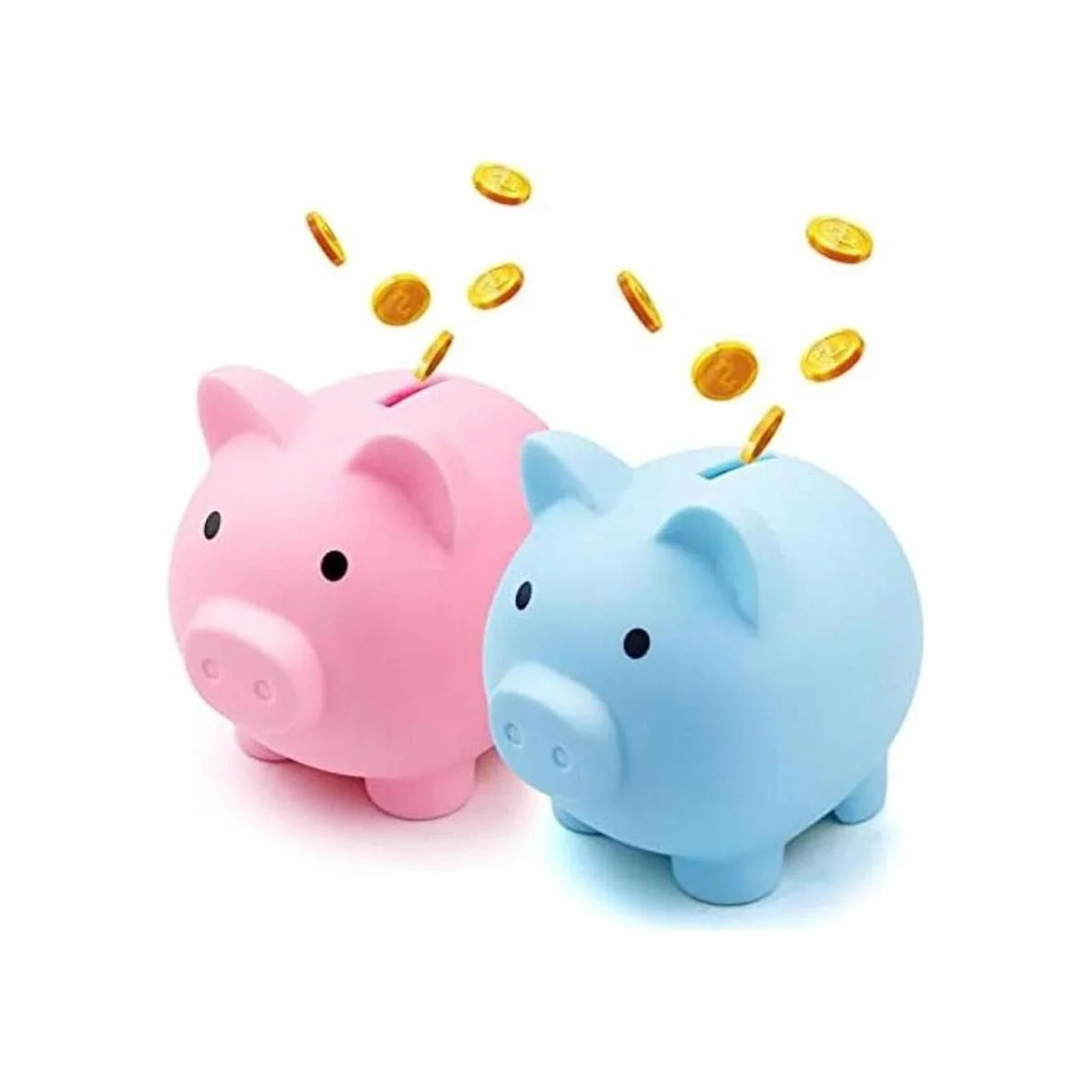 Fireboomoon Paquete de 2 cajas de dinero de plástico para cerdo, irrompibles para ahorrar dinero para niños, niñas, adultos, decoración del hogar azul y rosa
