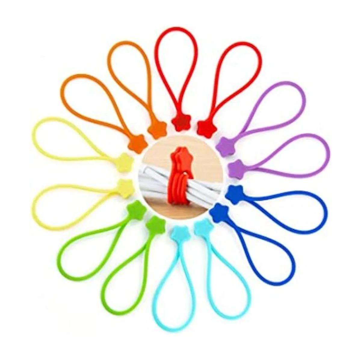 Fironst Juego de 14 bridas magnéticas de silicona reutilizablesplastinudos para agrupar y organizar, sostener cosas, cables de carga USB, imanes de refrigerador, devanadera de cable o simplemente para diversión.