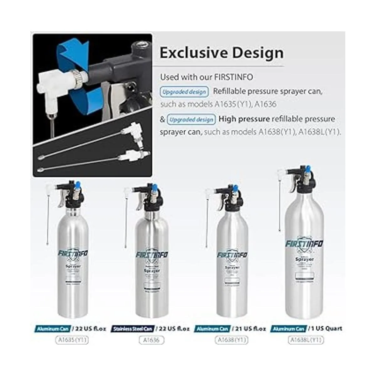 Diseño exclusivo: se utiliza con nuestra lata pulverizadora recargable de alta presión FIRSTINFO, como los modelos: A1638, A1638L, A1638Y1, A1638Y5, A1638LY1