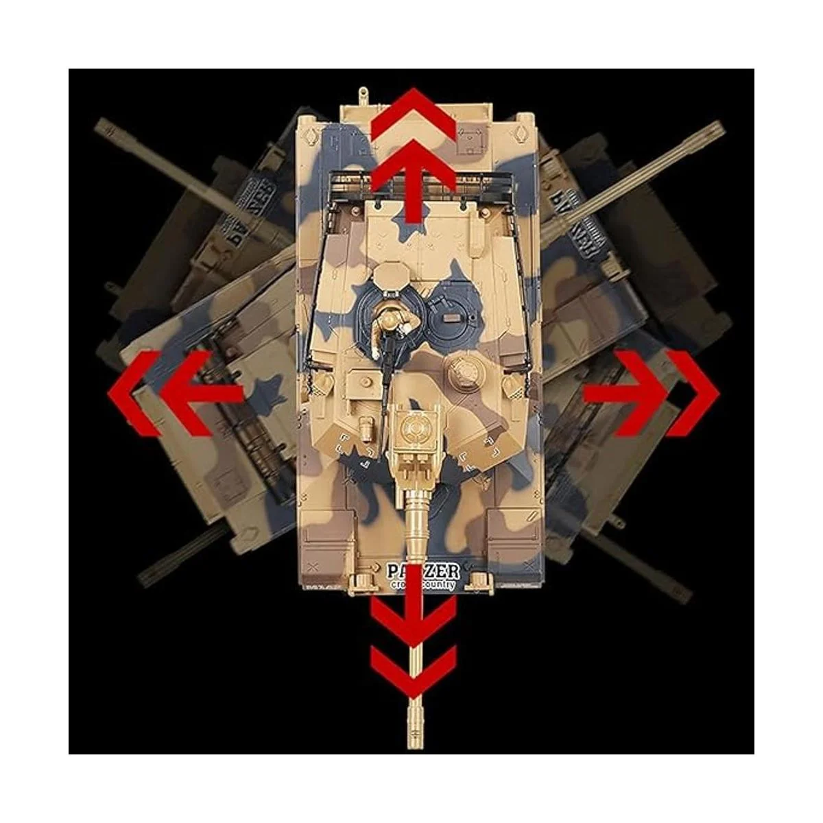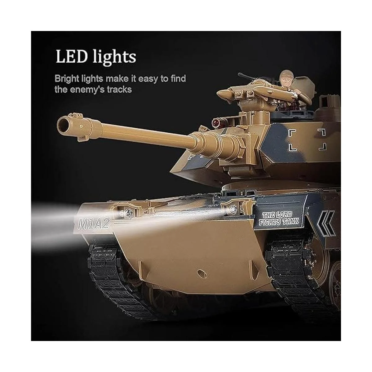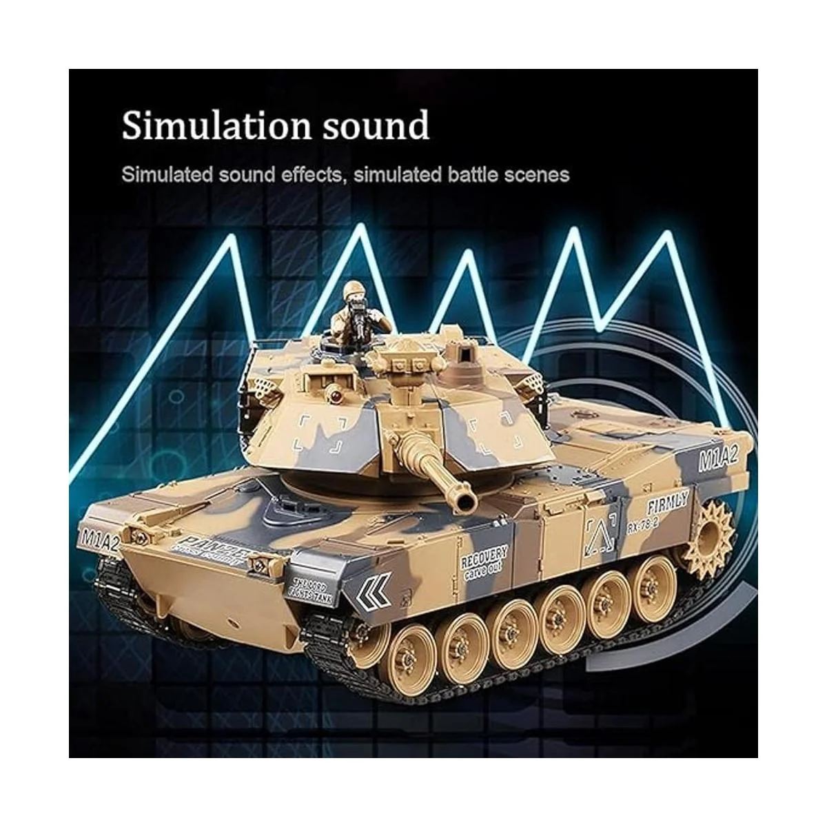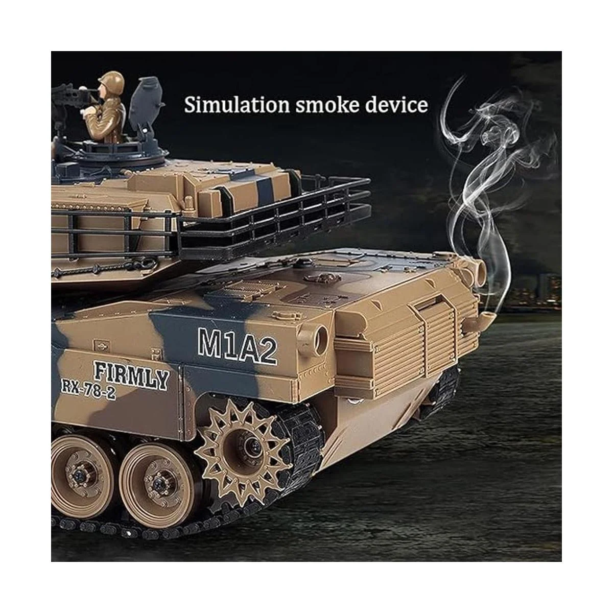 Fisca Tanque de control remoto de 118 de 2.4 GHz, tanque de control remoto M1A2 de 15 canales con controlador de humo y vibración, tanque de batalla principal Abrams que dispara balas de aire BBS, juguete militar para niños y adultos