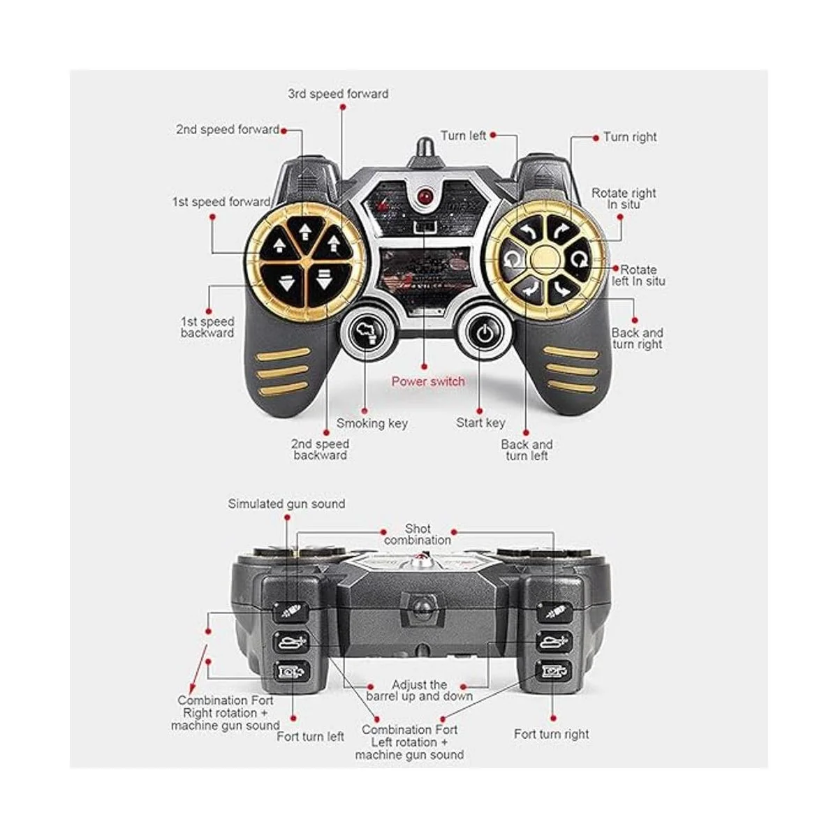 Control remoto de vibración de 2,4 GHz: rango de distancia de control remoto de hasta 150 pies. Puede soportar a varios jugadores para operar tanques al mismo tiempo sin interferencias. Y el controlador tiene vibración mientras disparas.