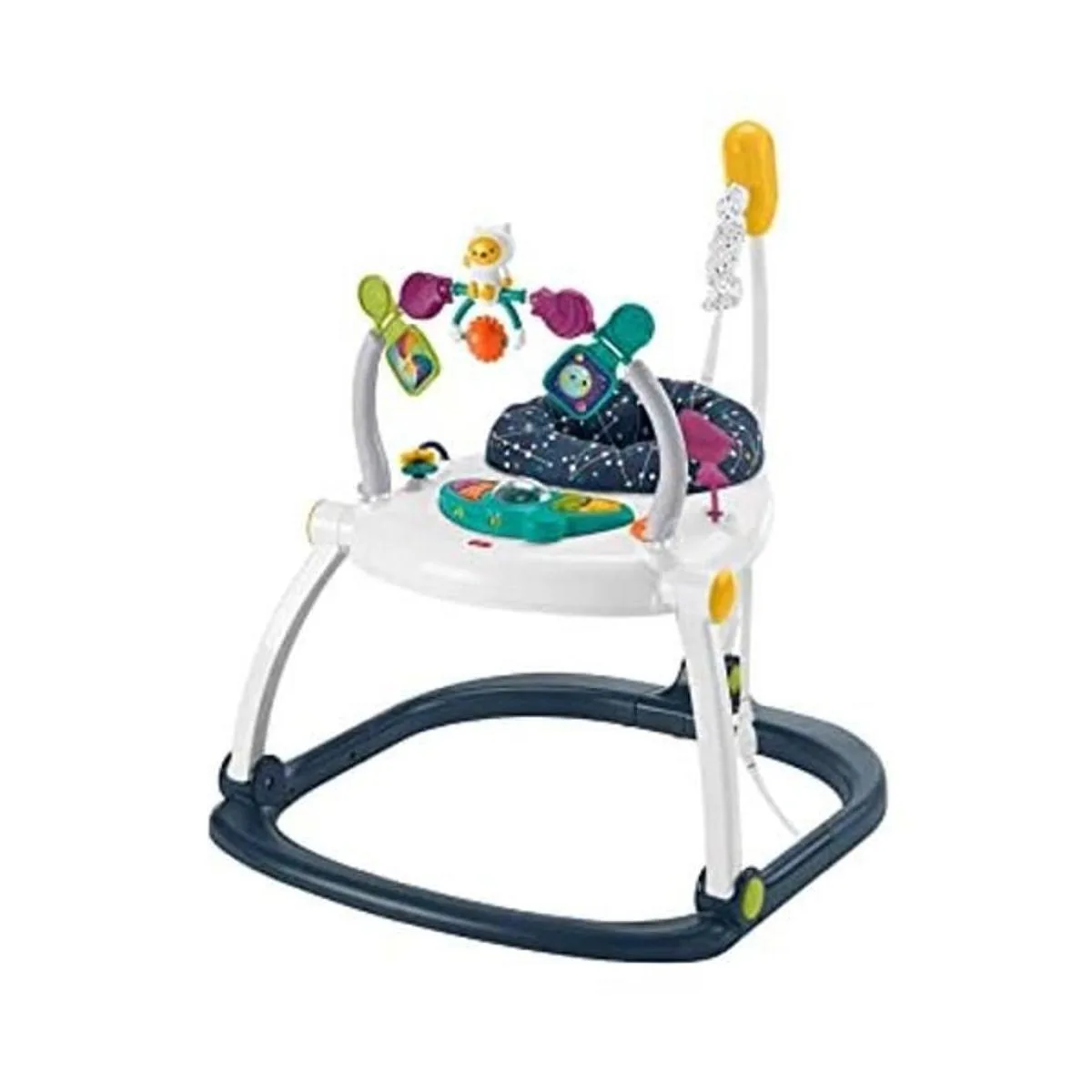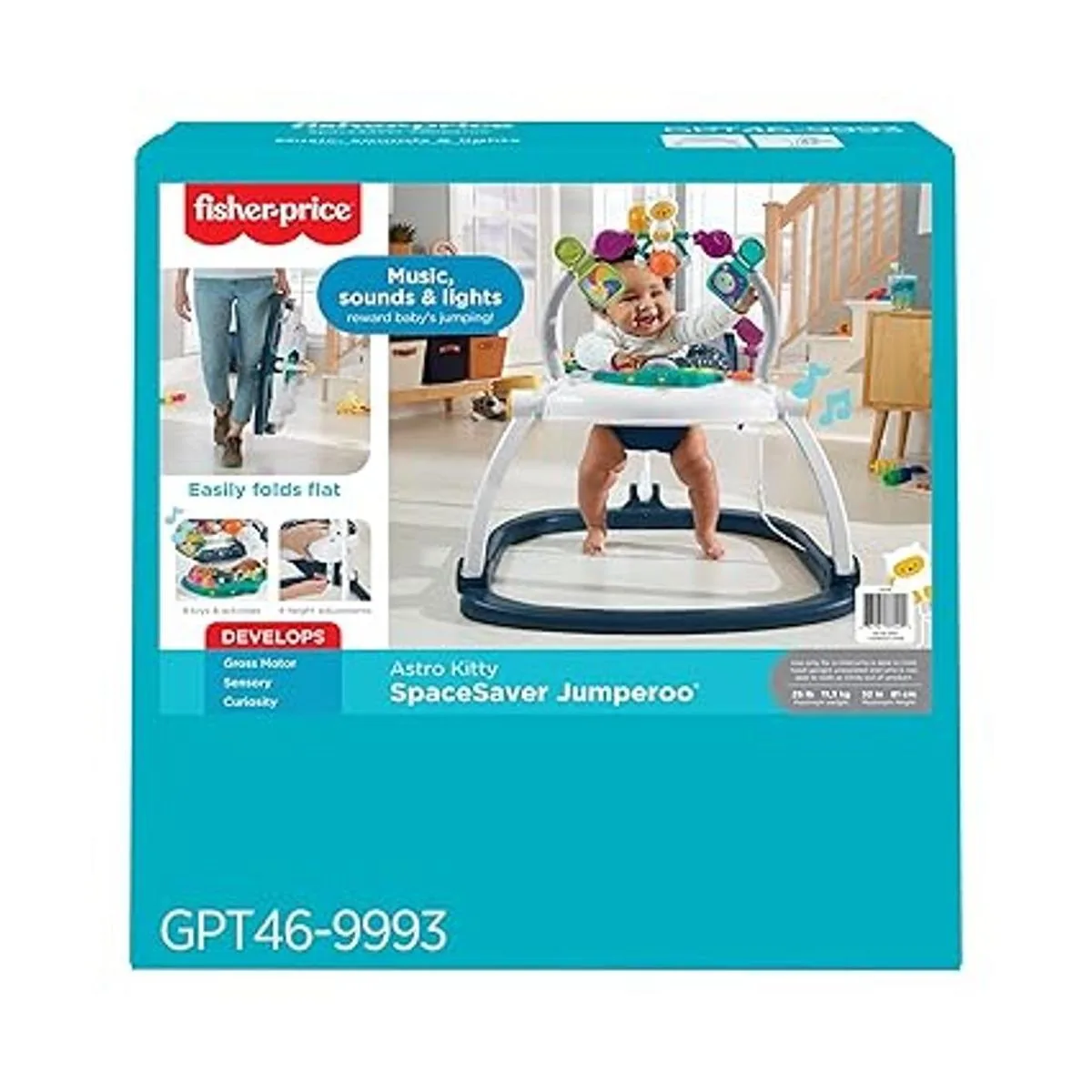 FisherPrice Astro Kitty SpaceSaver Jumperoo, centro de actividades infantiles con temática espacial con asiento de rebote ajustable, luces, música y juguetes interactivos