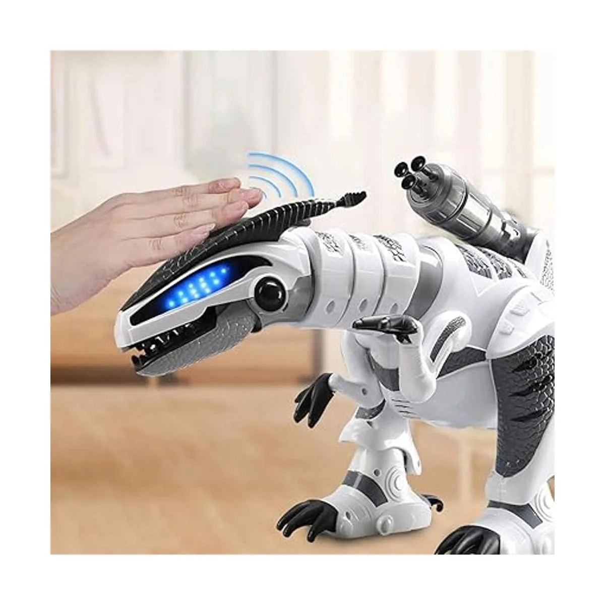 Sensible al tacto inteligente: toca la zona interactiva de encuestados en la cabeza, el dinosaurio RC interactuaría con la cabeza agitadora y la cola que se mueve, incluso diferentes voces con múltiples toques.