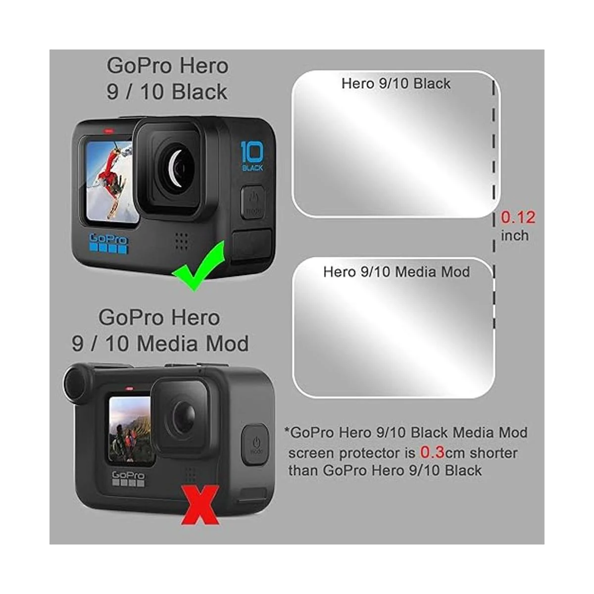 FitStill Protector de pantalla para GoPro Hero 1110 9 negro, protector de pantalla trasera de vidrio templado ultrallear protector de lente de vidrio templado protector de pantalla frontal de vidrio templado cubierta de lente, paquete de 2