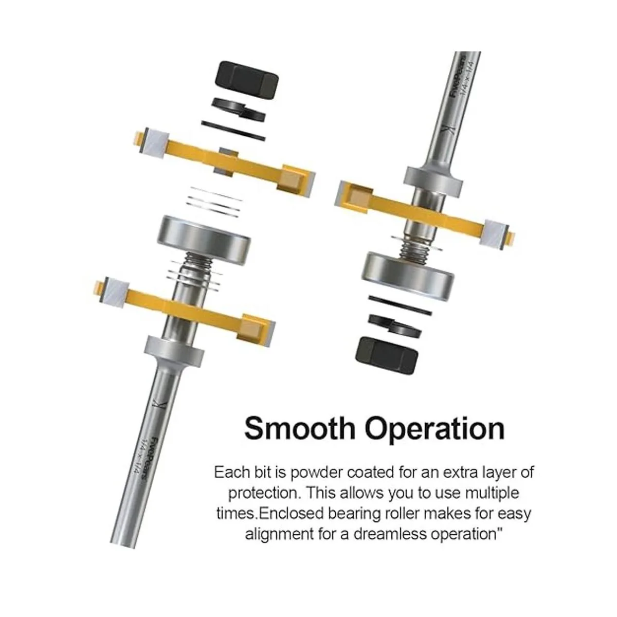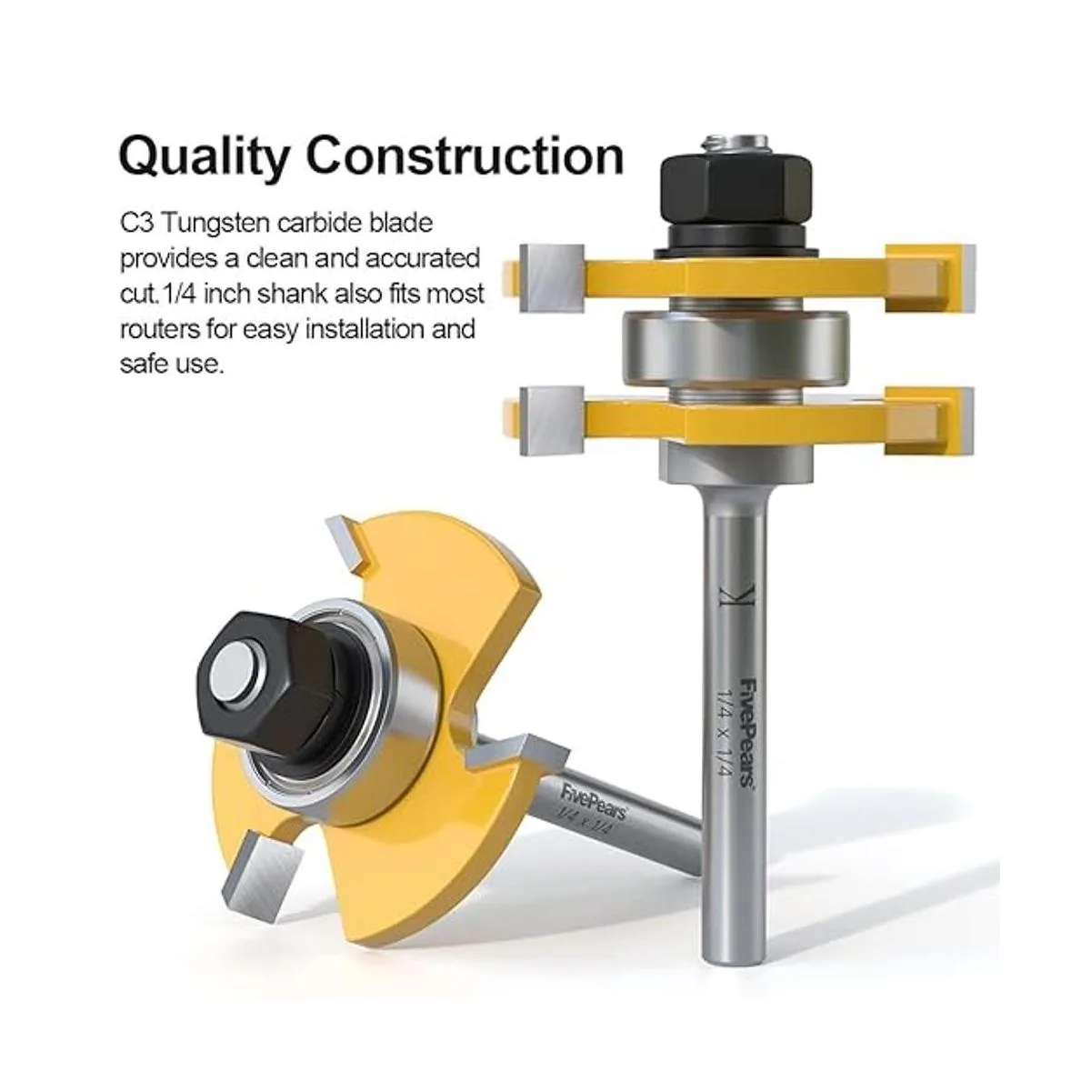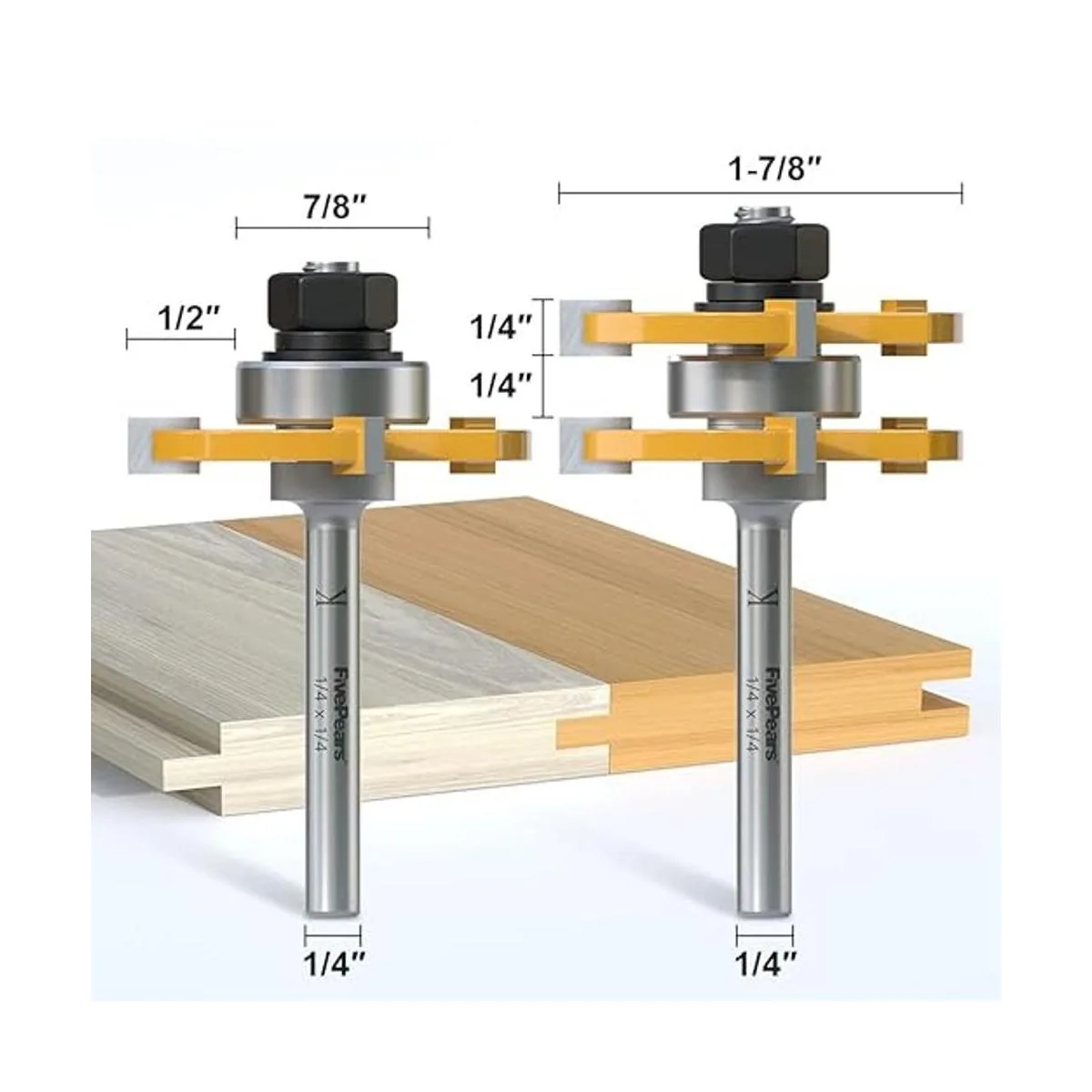 Características principales Juego de 3 puntas en forma de T para muebles, incluye 1 broca de enrutador de lengua, 1 broca de enrutador de ranura.