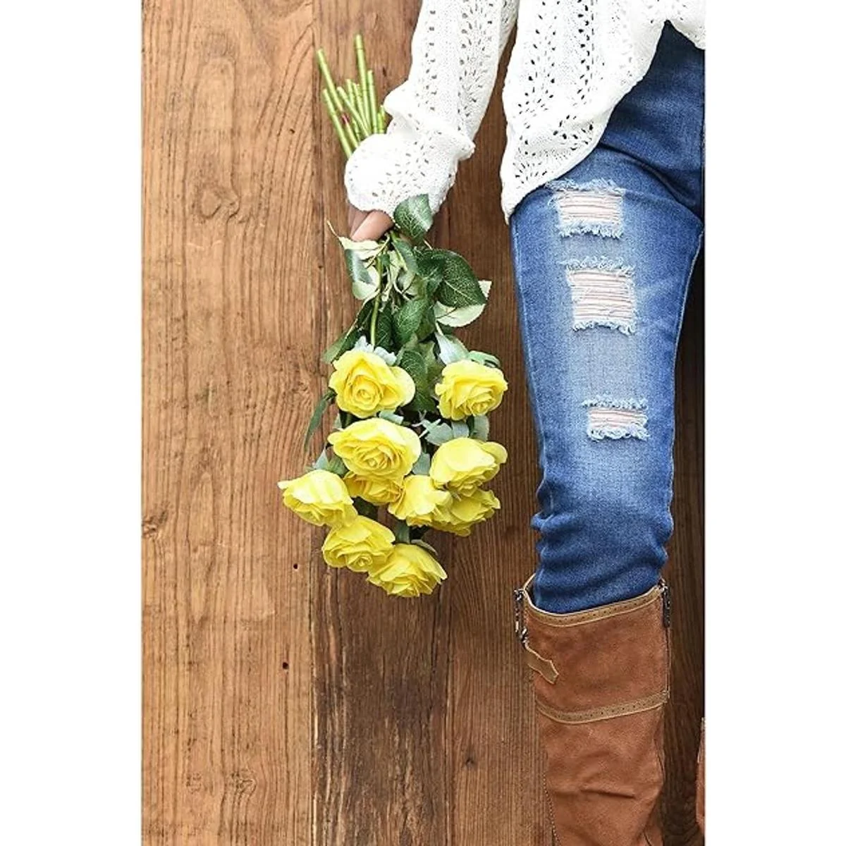 A diferencia de las flores artificiales de rosas ordinarias: estas son flores de tacto real con flores ricas y saludables, hojas de tamaño completo, espinas y tallos largos. La densidad de los pétalos de rosa amarilla sedosa adorna cada tallo con una sensación real.