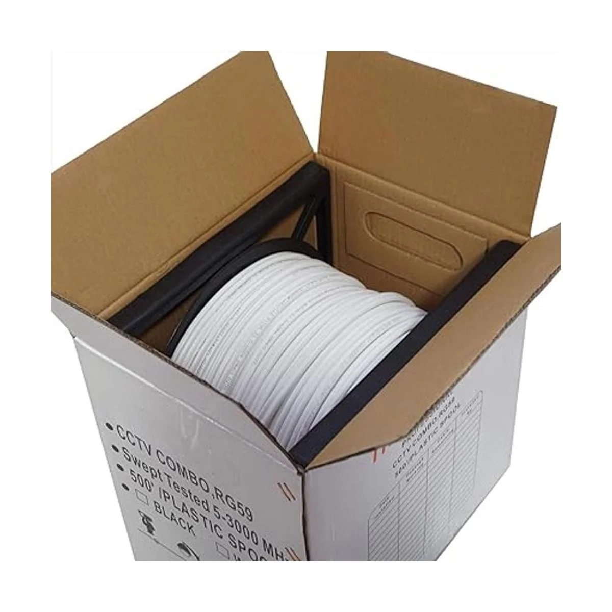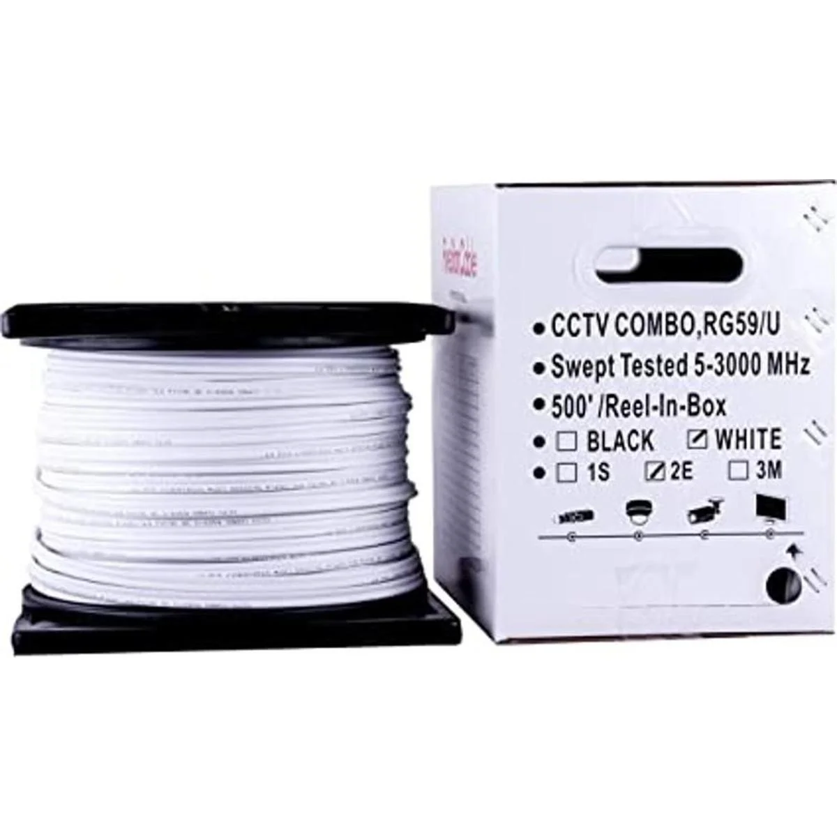 FiveStarCable Cable Cable coaxial RG59 Siamés CCTV Combo de 500 pies 20AWG RG59 Video 182 18 AWG de alimentación para sistema de seguridad de supervivencia 500 pies, color blanco