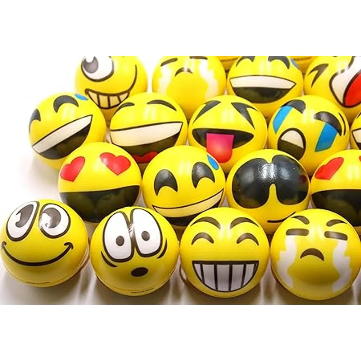 Paquete de 24 bolas de espuma de 2.5 in de diámetro, divertidas pelotas de estrés facial, caras de emoción variadas. Fácil de concentrar y grandes juguetes para niños con TDAH.