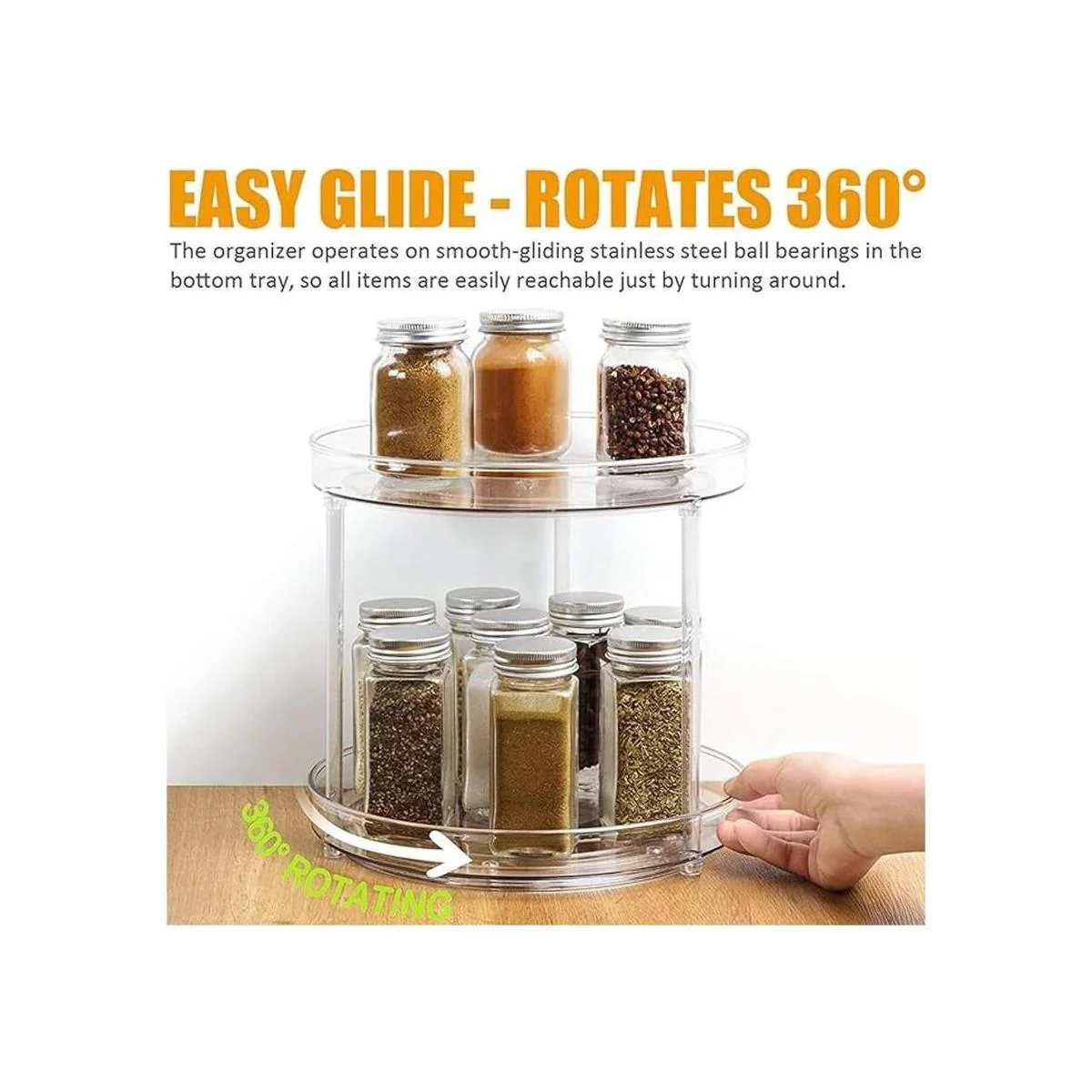 Gira fácilmente gira en un círculo para un fácil acceso a condimentos, especias, alimentos en caja, alimentos, latas, suministros de cocina e ingredientes. También puede ayudar a organizar esmalte de uñas, suministros de limpieza, suministros para el cabello, botellas, jabones y otros objetos pequeños.