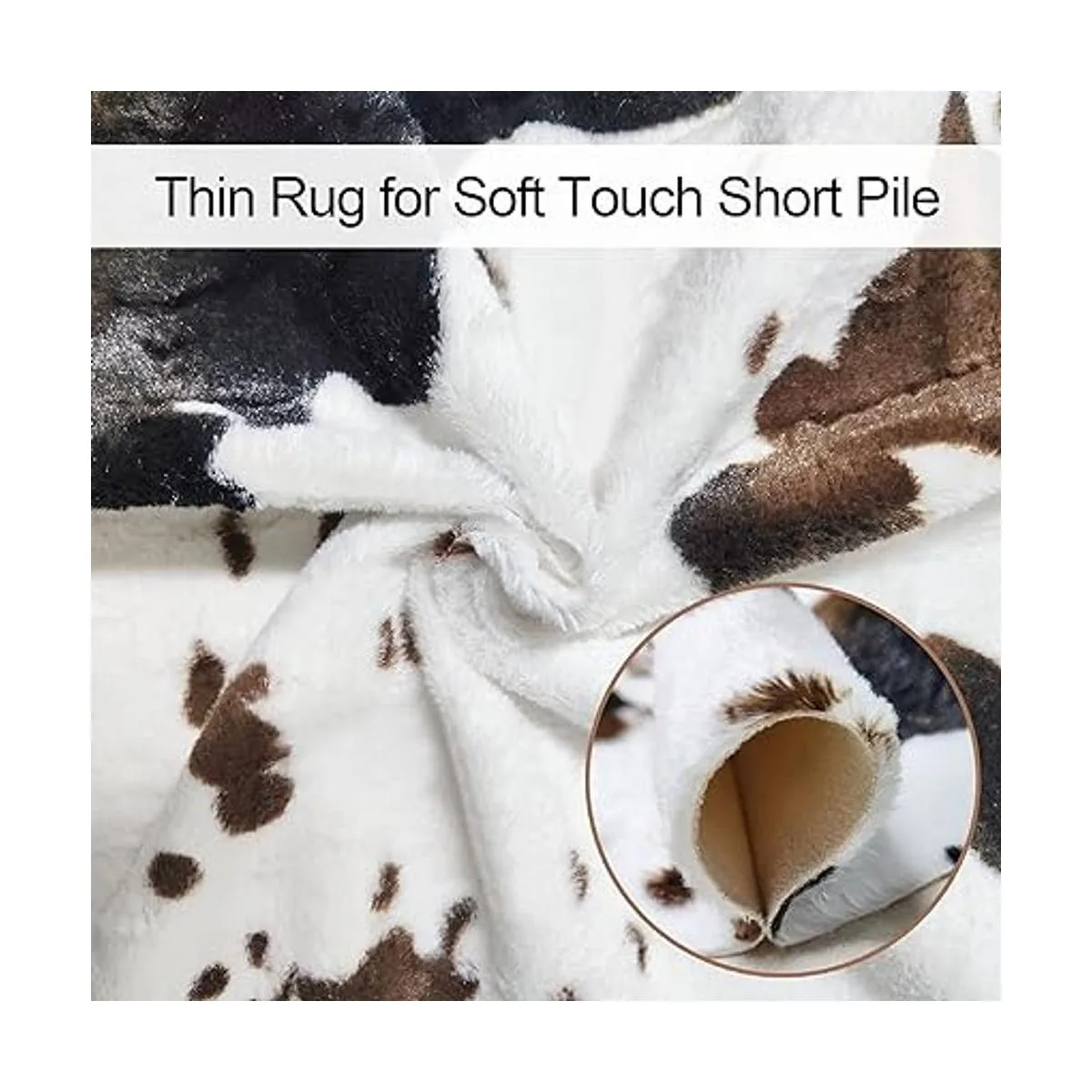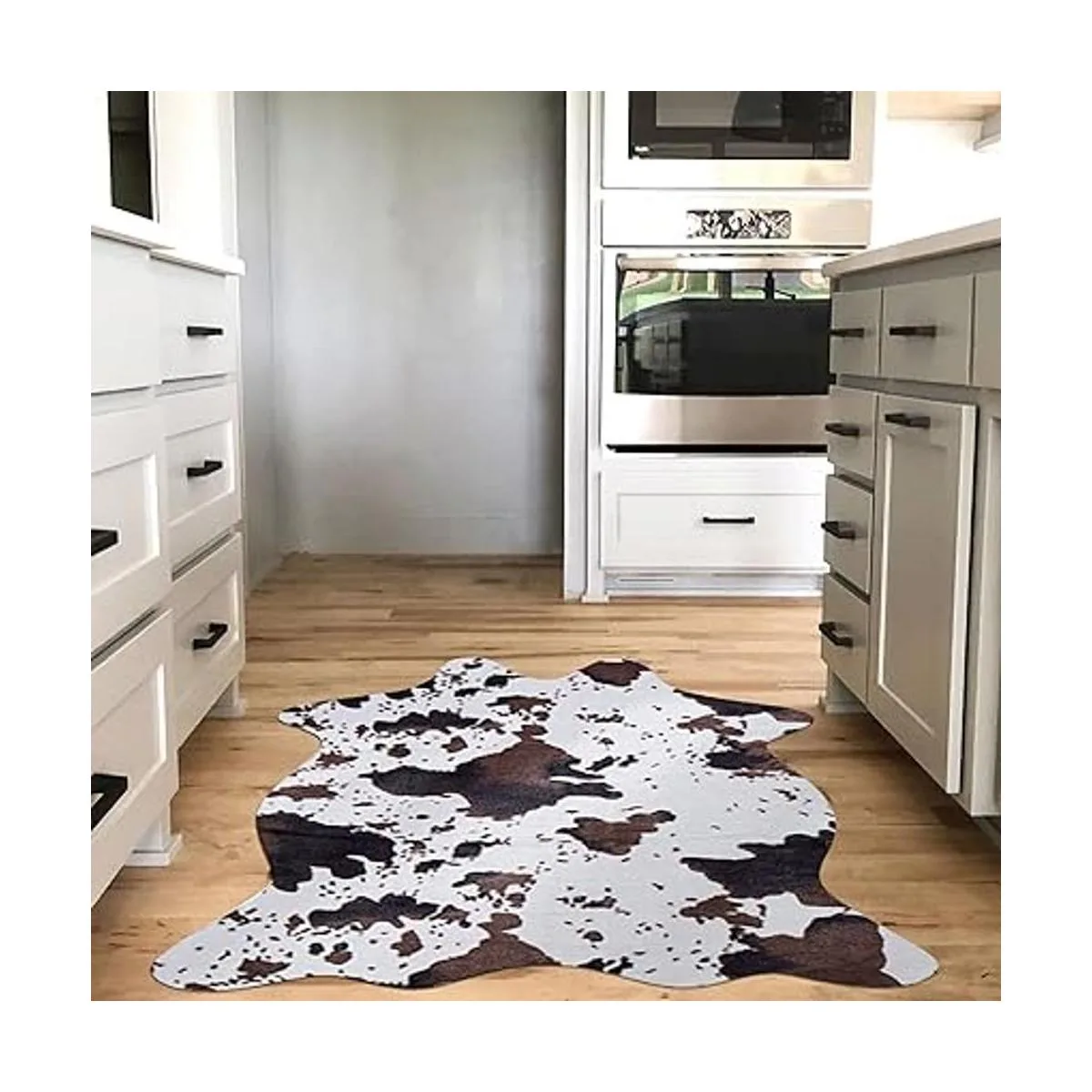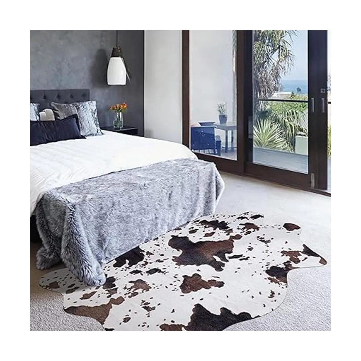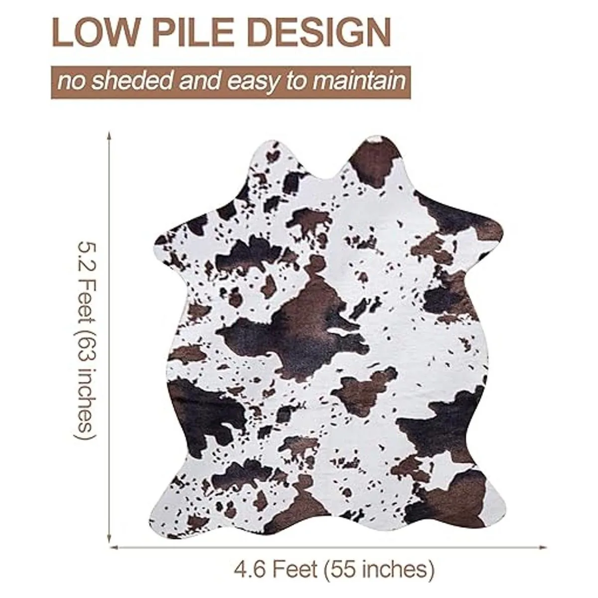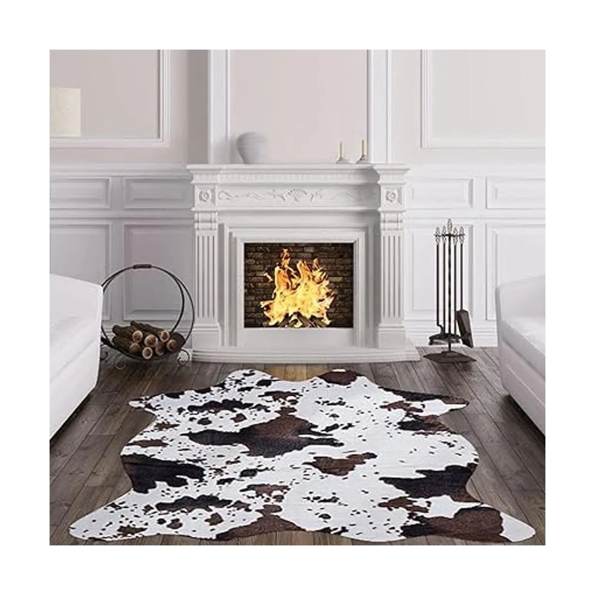 Fixseed Alfombra de piel sintética de vaca para sala de estar, 4.6 x 5.2 pies, bonita alfombra antideslizante con estampado de animales, alfombra con estampado de vaca para decoración del hogar occidental