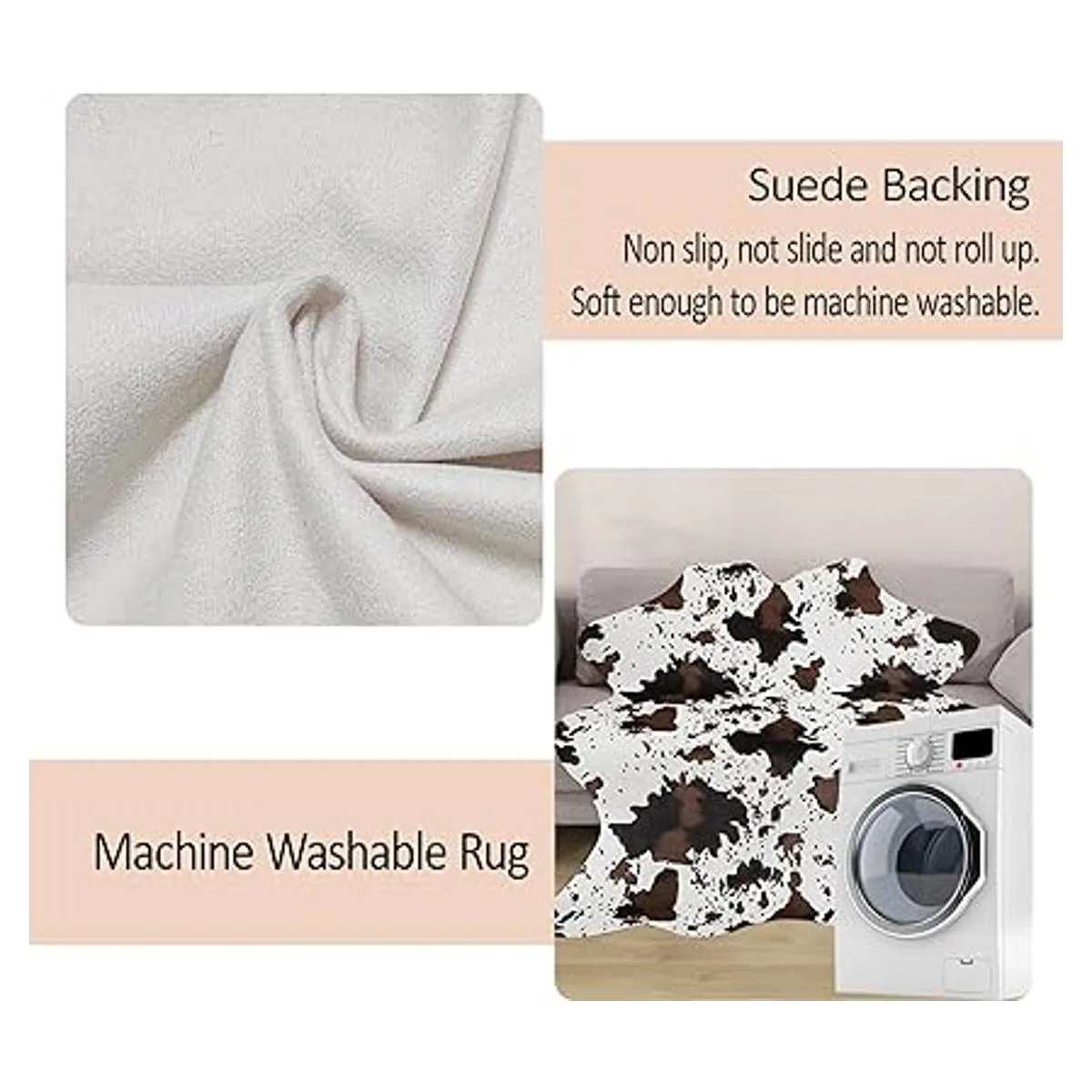 No se enrolla ni se enrolla: esta alfombra con estampado de piel de vaca viene con una parte trasera antideslizante de gamuza artificial, que se adhiere bien al suelo y no se arruga. Este respaldo de gamuza duradero es lo suficientemente suave como para ser lavable a máquina.
