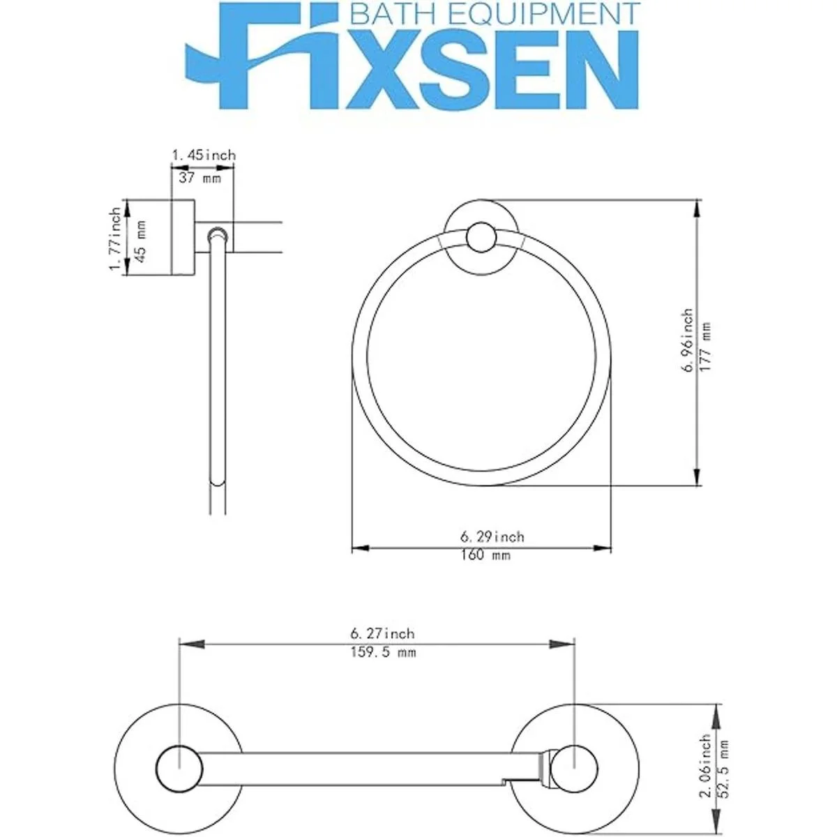 Fixsen Juego de 2 piezas de accesorios de baño, anillo de toalla negro y soporte de papel higiénico de acero inoxidable y aleación de zinc, soporte para toallas de baño, soporte de toallas, color negro mate, montado en