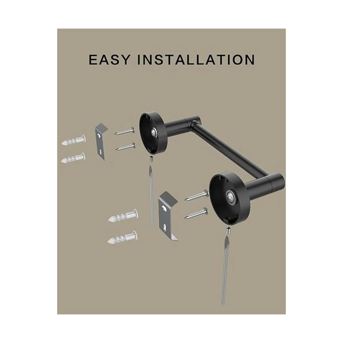 Fixsen Soporte de papel higiénico negro mate para baño, doble poste giratorio de acero inoxidable y aleación de zinc, soporte de pared desmontable, 1 unidad