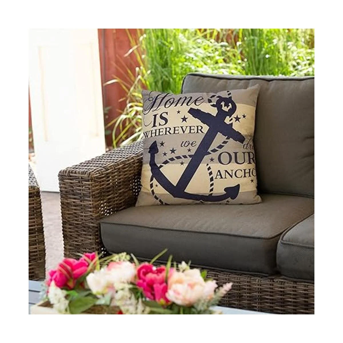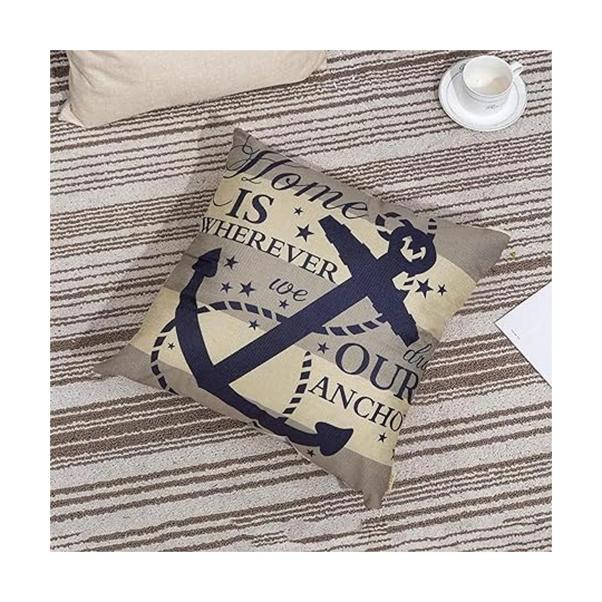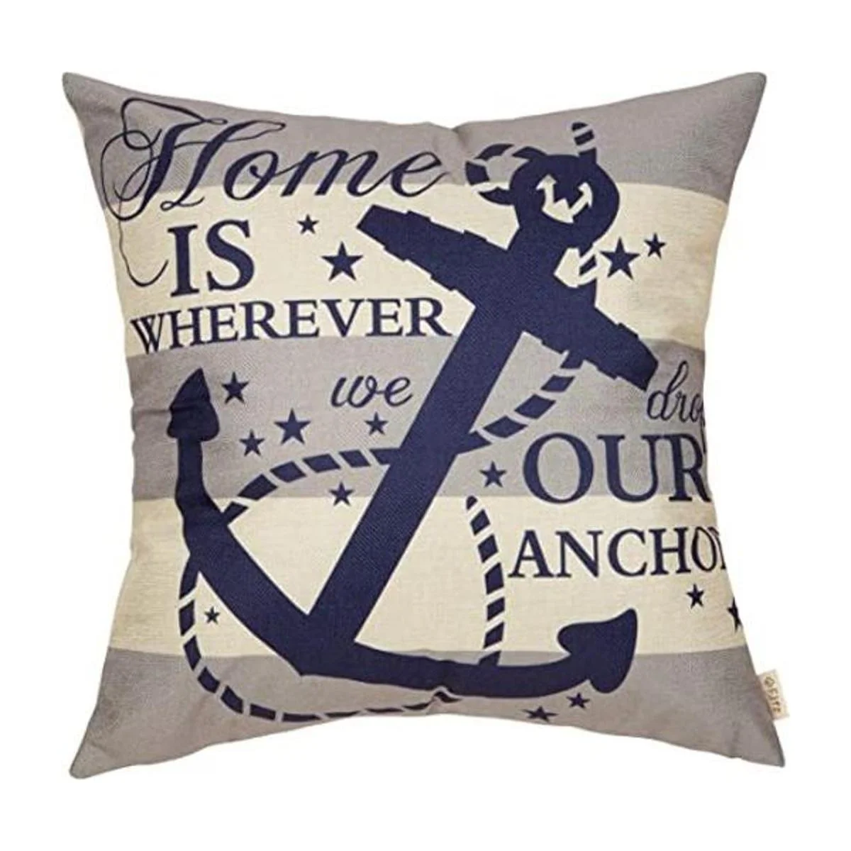 Fjfz Funda de almohada decorativa de granja náutica de 18 x 18 pulgadas, Home is Wherever We Drop Our Anchor, letrero de cita de verano, decoración del hogar, funda de cojín de lino de algodón para sofá