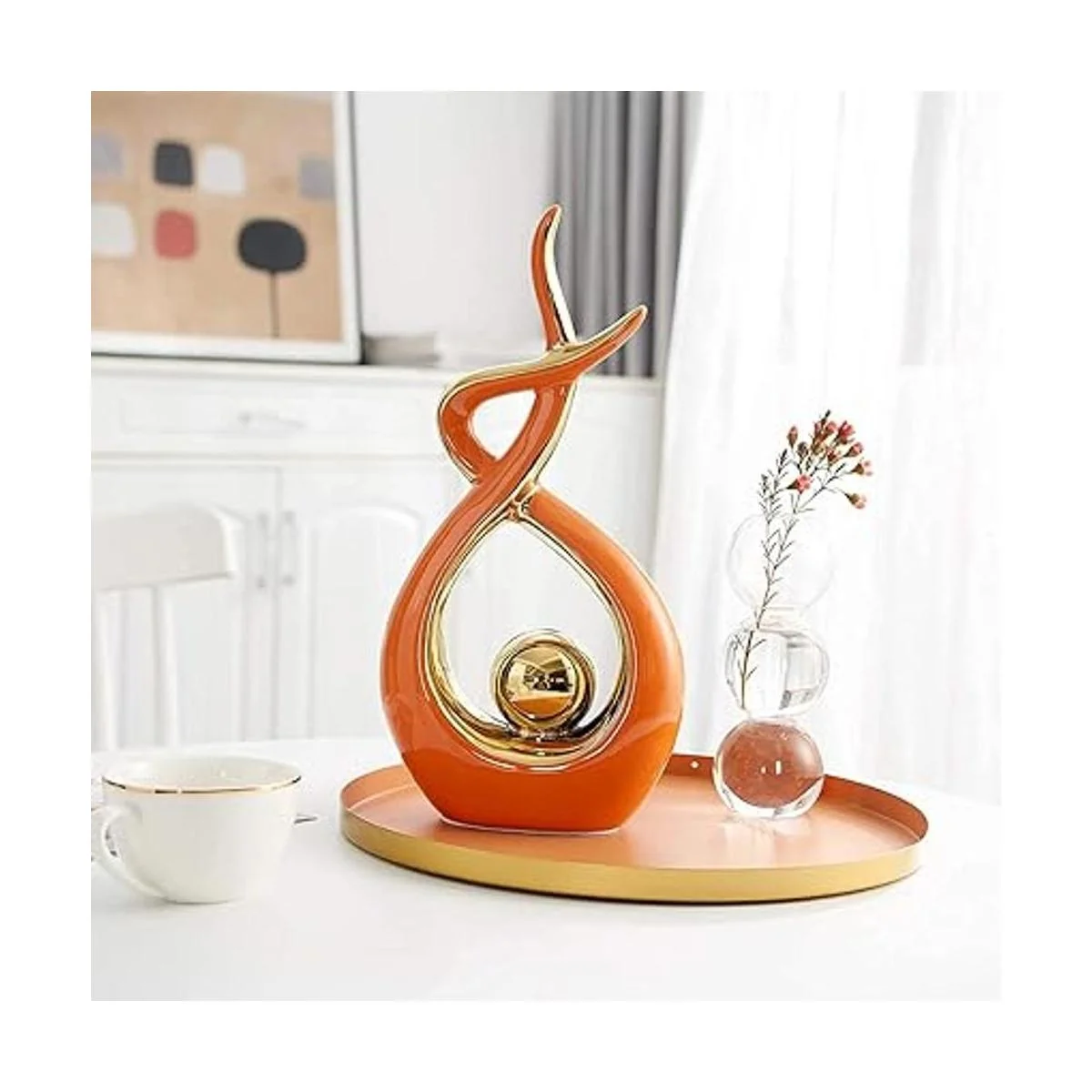 FJS Decoración para el hogar, arte abstracto moderno, decoración para sala de estar, centro de mesa de café, gran idea de regalo, 12.8 pulgadas de alto naranja, grande