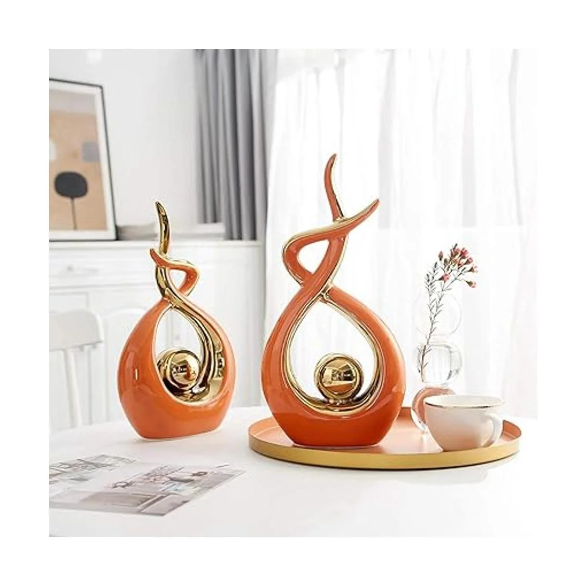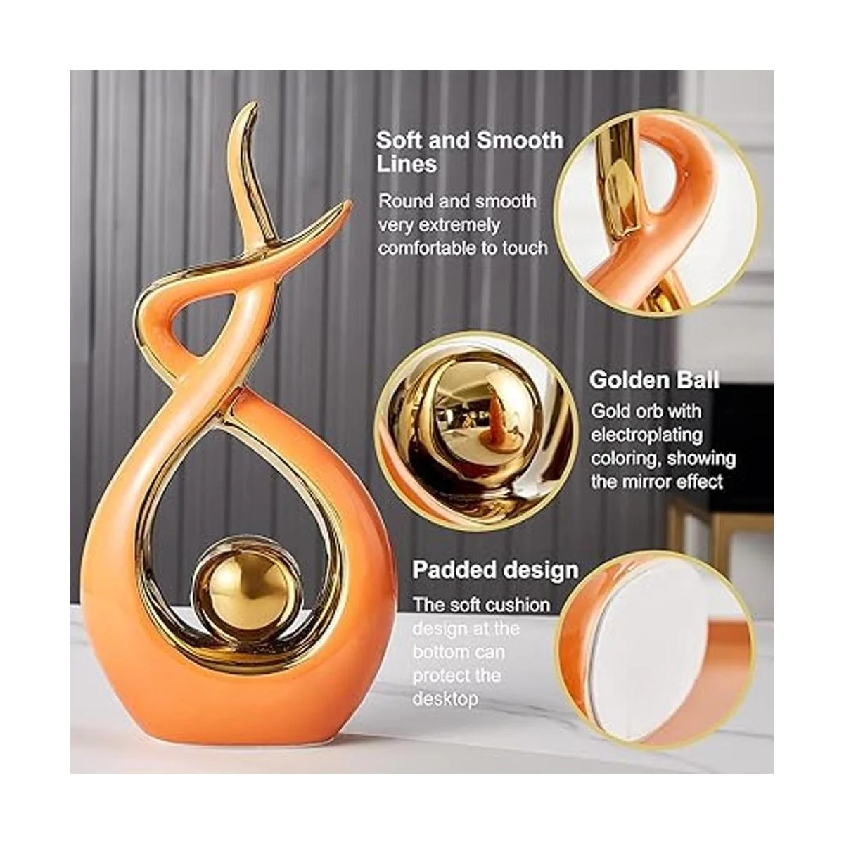SENSACIN PREMIUM La elegante y moderna estatua esta hecha de cerámica en su conjunto cocida a altas temperaturas, superficie lisa, cómoda al tacto, fácil de limpiar, sin olor, no toxica y no peligrosa. La parte inferior de la estatua está diseñada con un cojín suave, se puede colocar de forma constante sin deslizarse, pero también para proteger los muebles. Embalaje del producto por caja bolsa de burbujas, embalaje muy seguro si está roto, por favor ponte en contacto con nosotros a tiempo