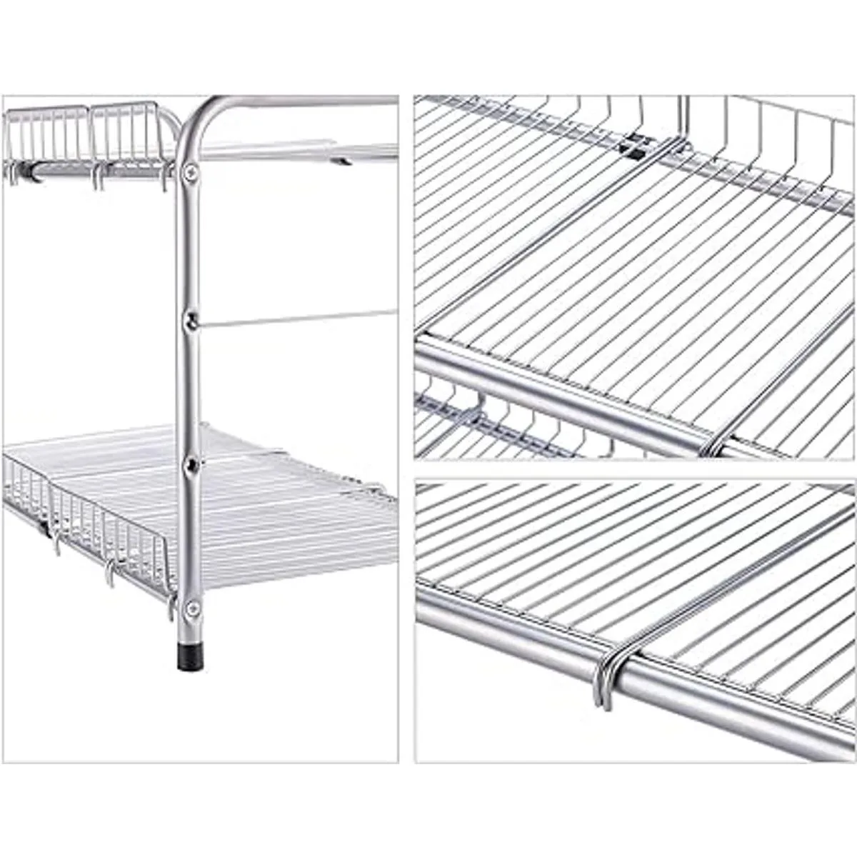 Alta capacidad y fácil de instalar: hecho de metal con revestimiento de plata en polvo. Mejor capacidad antioxidante y larga vida útil. Debe fijarse a través de tornillos con herramientas. Con el paquete, habrá 4 tornillos e instrucciones de paso idioma español no garantizado. Nuestro marco especial con esta calidad garantiza que el organizador de estantes expandible Flaghip de 2 niveles pueda soportar más de 22 libras.