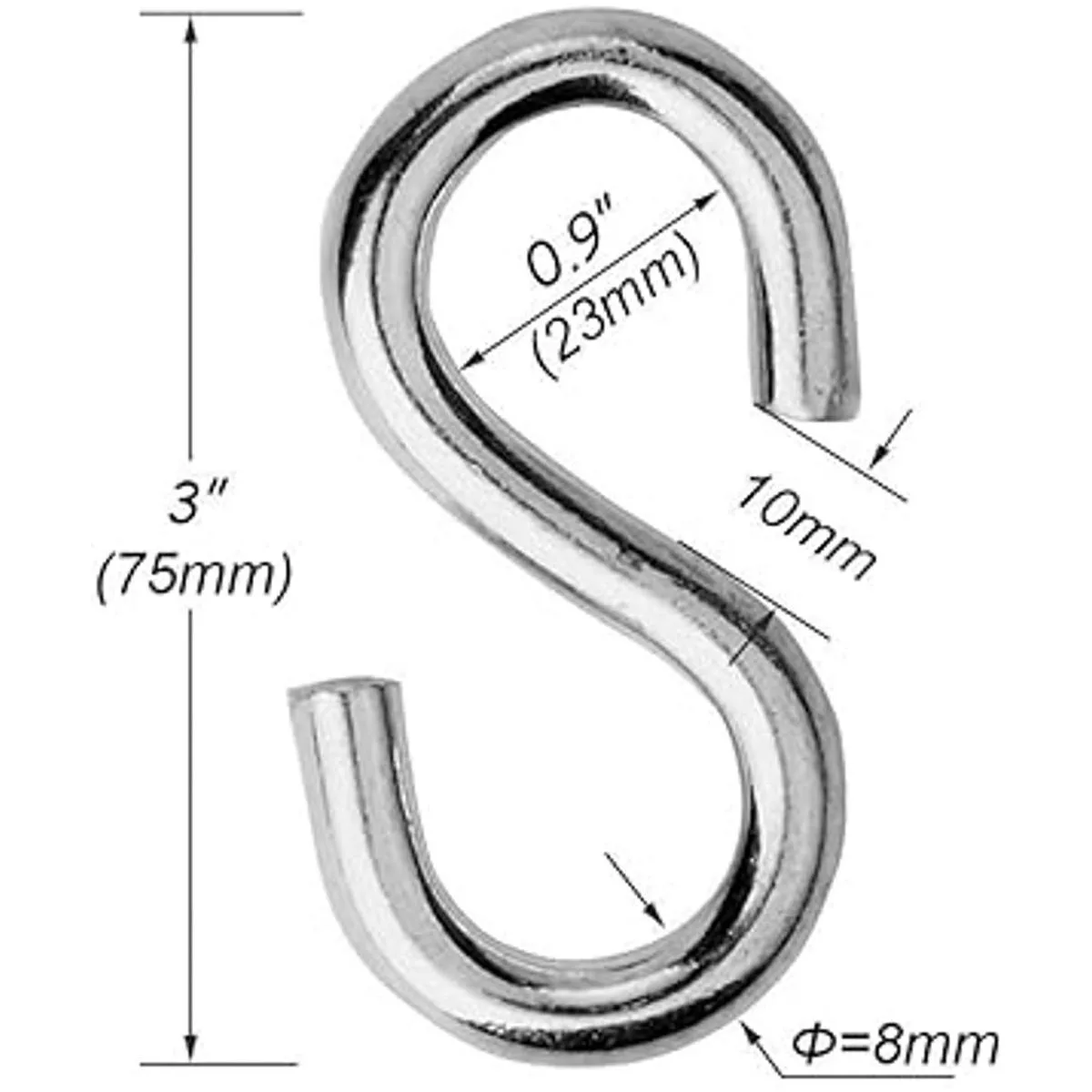 Flammi Paquete de 2 ganchos en S resistentes para colgar hamaca y plantas con columpio, máximo 500 libras, 3 pulgadas de largo 516 pulgadas de grosor fuertes ganchos galvanizados