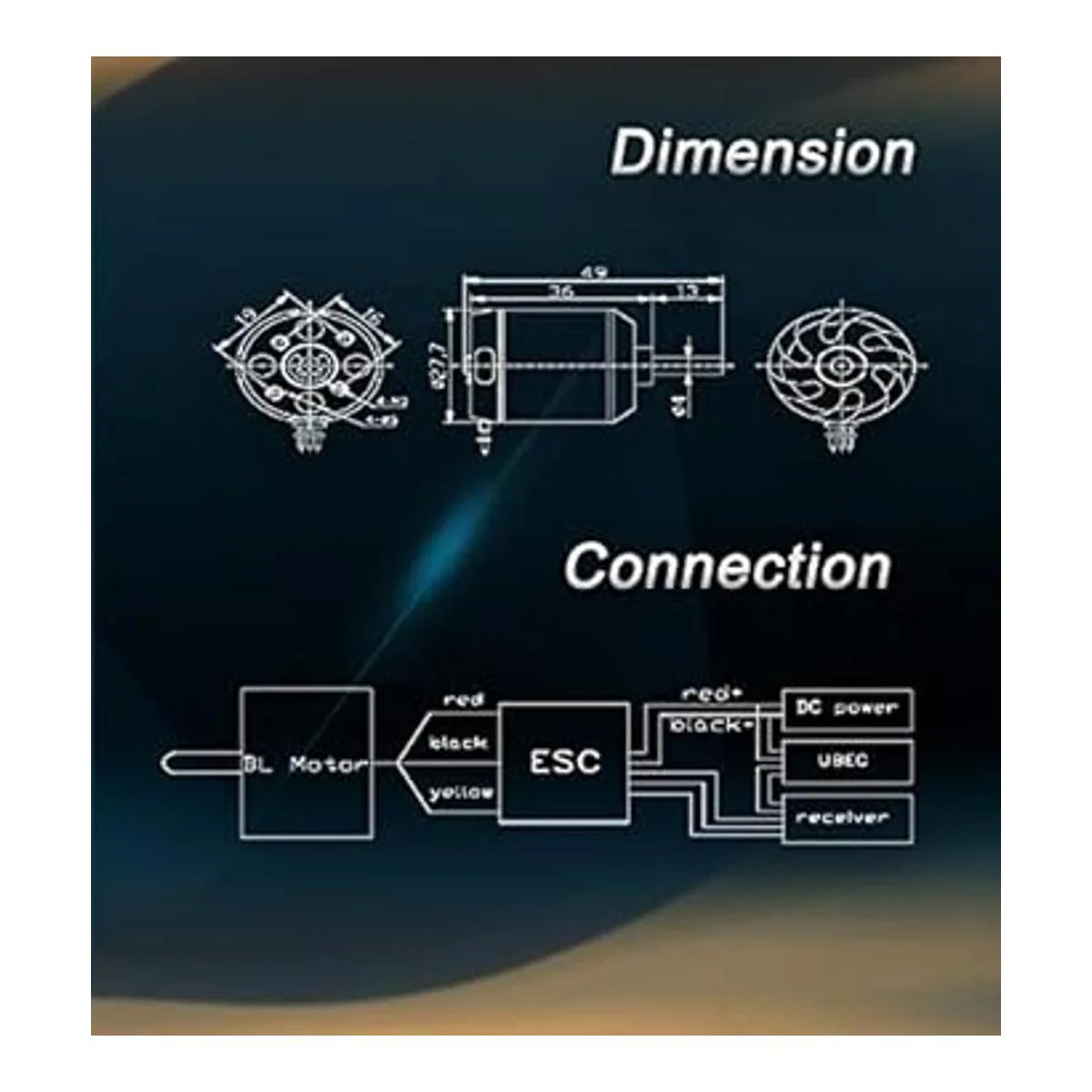 El motor de 880 KV es de 14 polos y 12 ranuras de diseño de motor de alto par, imanes 42SH y bobinados de cobre de pureza maximizan la eficiencia, que es compatible con hélice de 6 9 pulgadas
