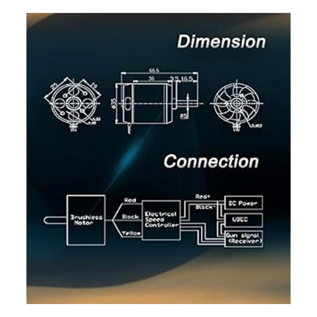 Parámetro: el motor sin escobillas es de 790 KV para helicóptero de ala fija, y el tirón máximo puede hasta 58.20 oz. El tamaño del eje es de 0.197 x 2.579 in, se recomienda ESC para accesorios de 40 A y 12 pulgadas para usar