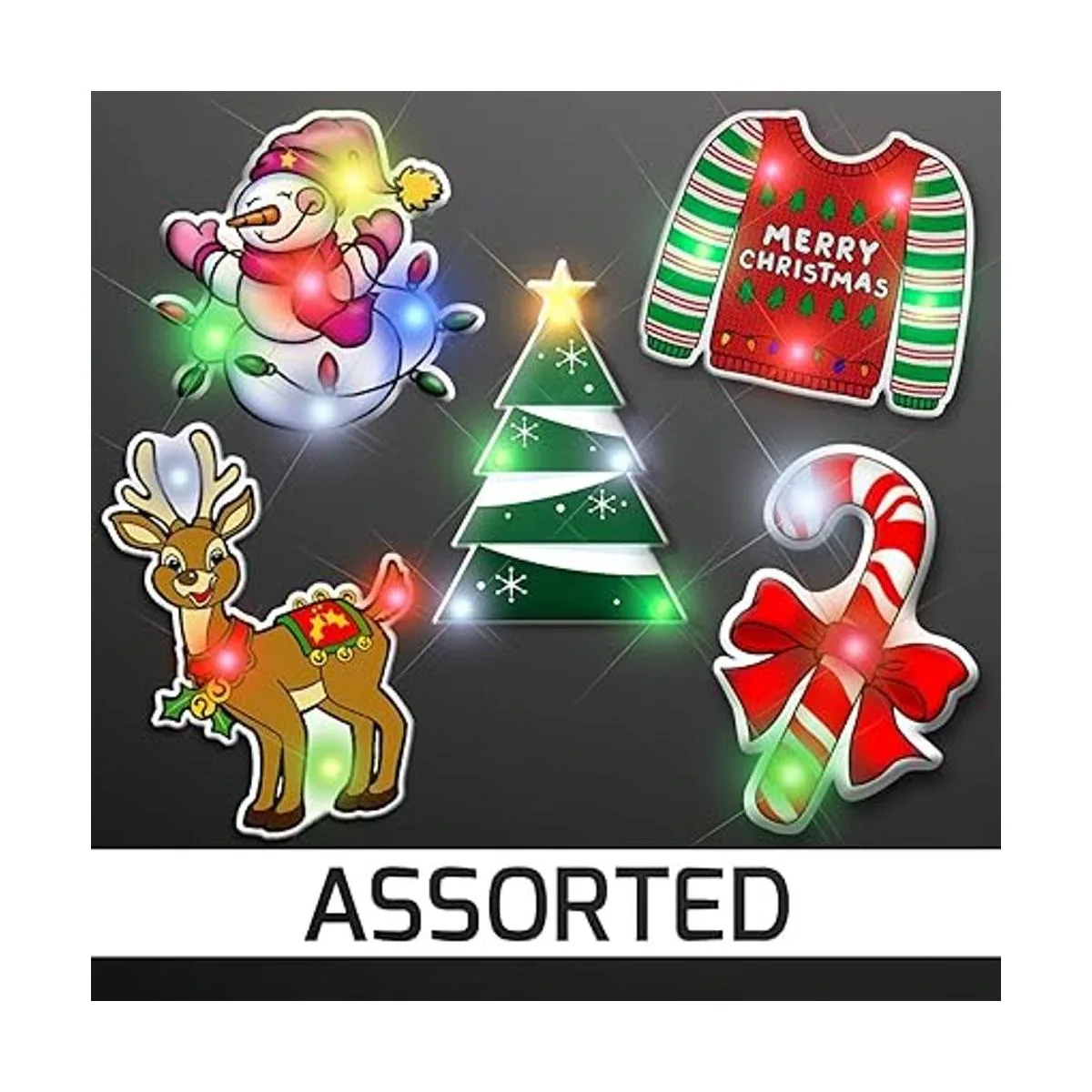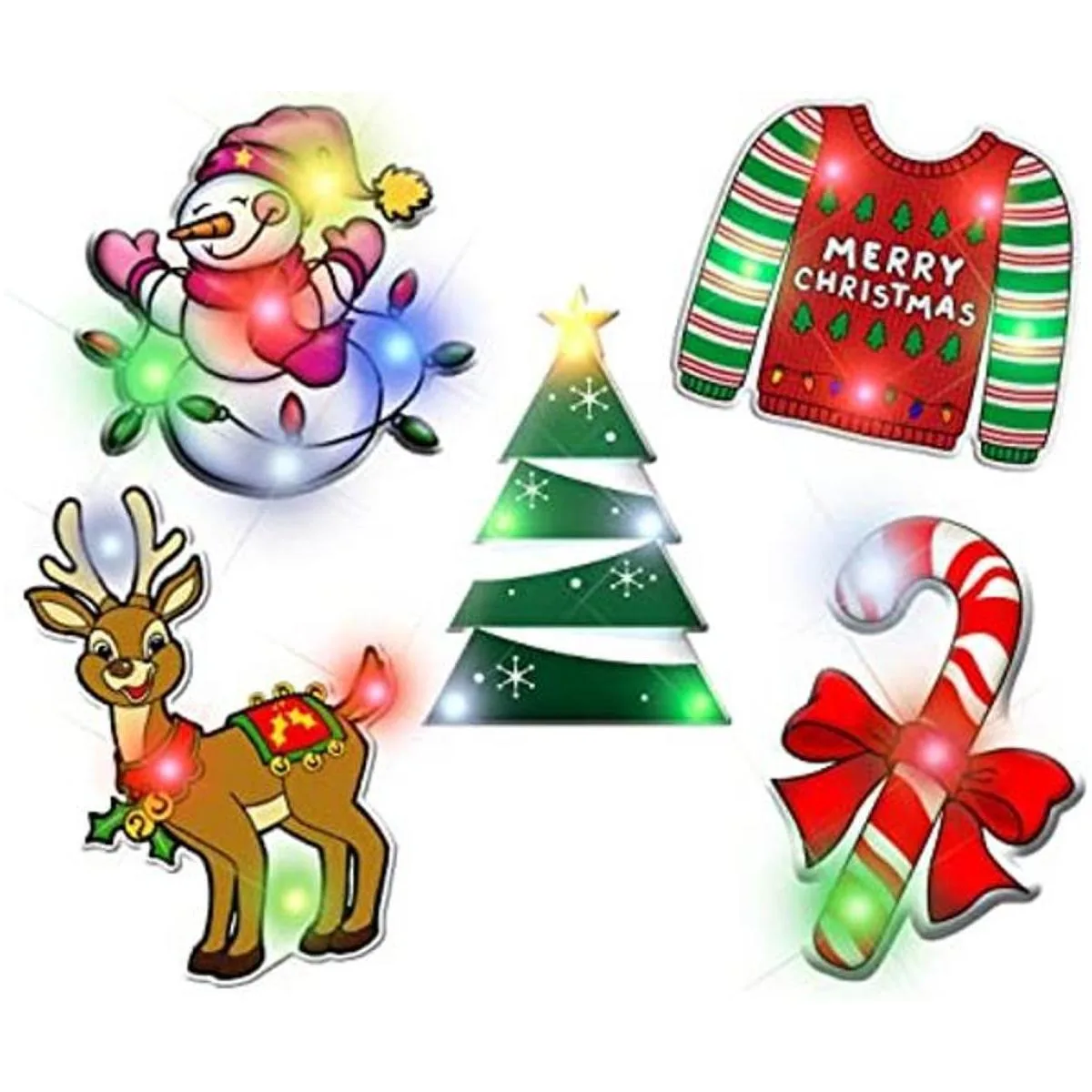 FlashingBlinkyLights Juego de 5 pines de solapa con luces LED para Navidad, muñeco de nieve, árbol de Navidad, renos, bastón de caramelo
