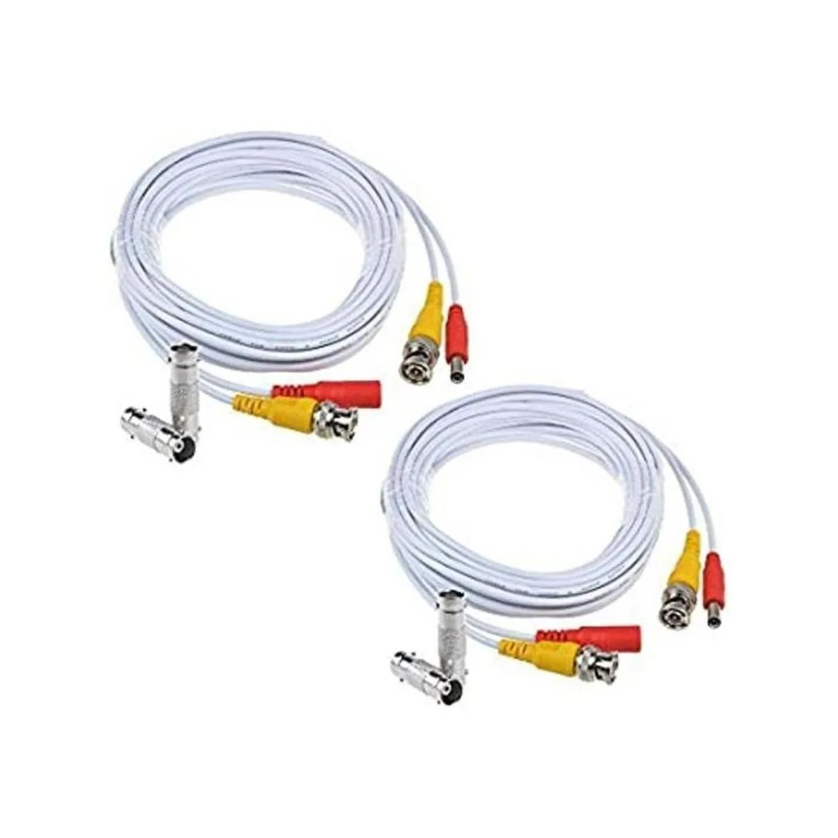Flashmen 2Pack de 25 pies HD Video Power Cámara de Seguridad Cables PreHecho Todo en Uno Cable de Extensión con Conectores BNC para Cámara de Seguridad CCTV Blanco