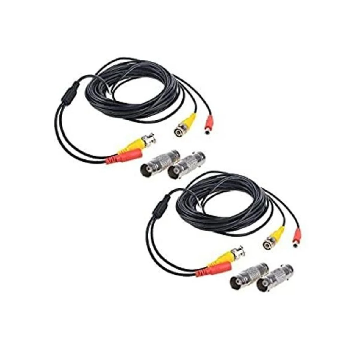 Flashmen Paquete de 2 cables de seguridad de video HD de 25 pies prefabricados todo en uno con conectores BNC para cámara de seguridad CCTV, color negro