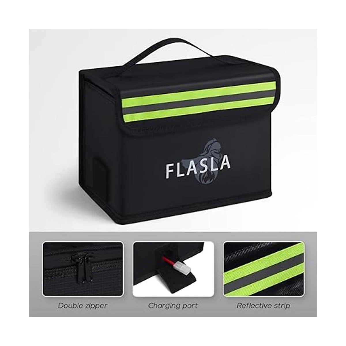 Protege la batería LiPo La bolsa de almacenamiento segura de batería LiPo ignífuga FLASLD es una manera conveniente de proteger tus baterías Lipo durante la carga, el tránsito y el almacenamiento. Libera tu mente cuando la lipo esté cargando, mientras tienes que dejarte un tiempo cerrando las lipos en la bolsa