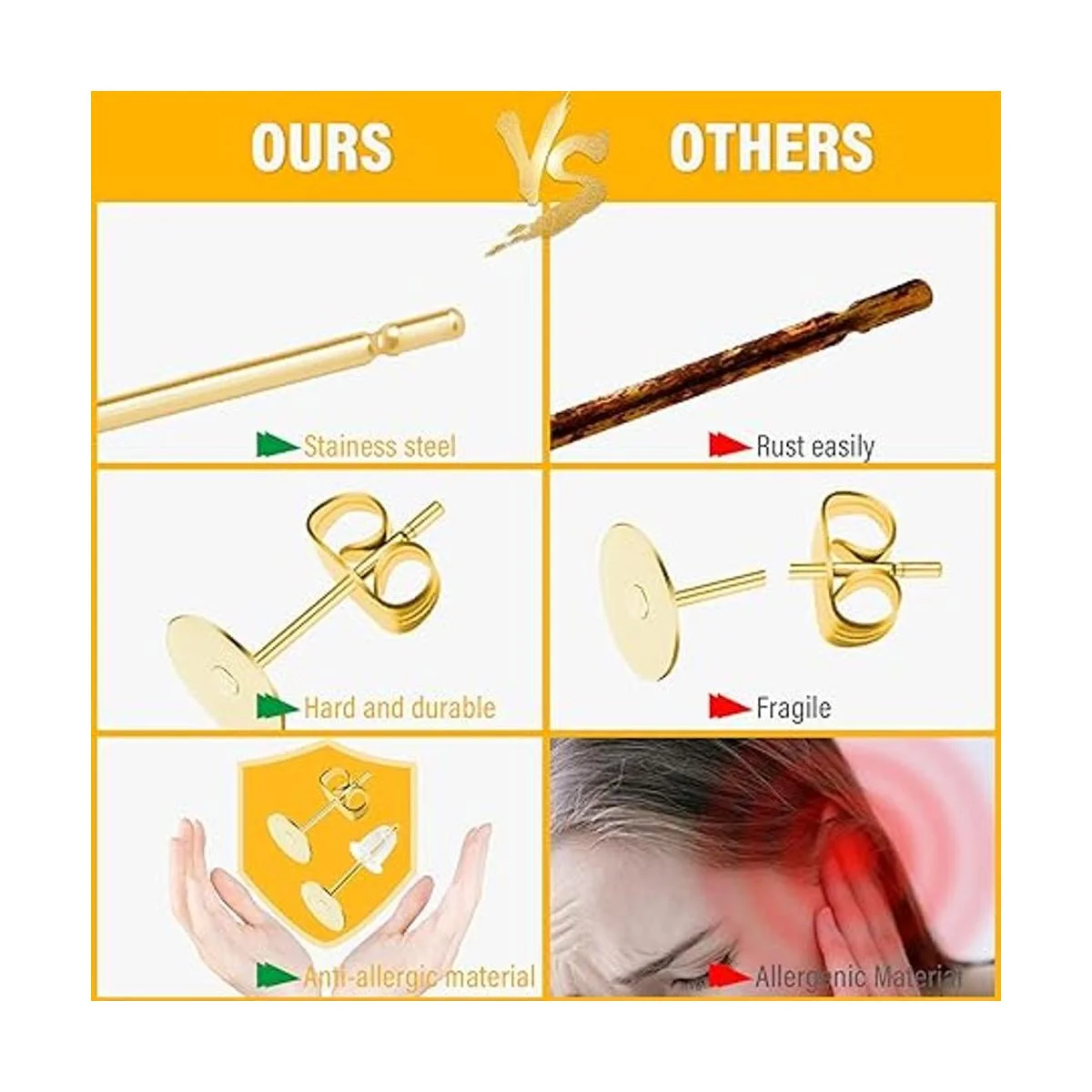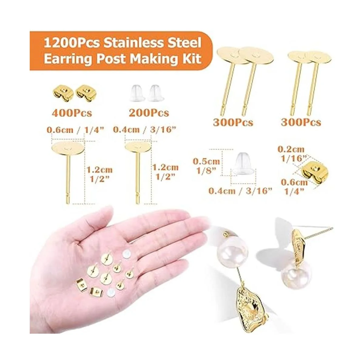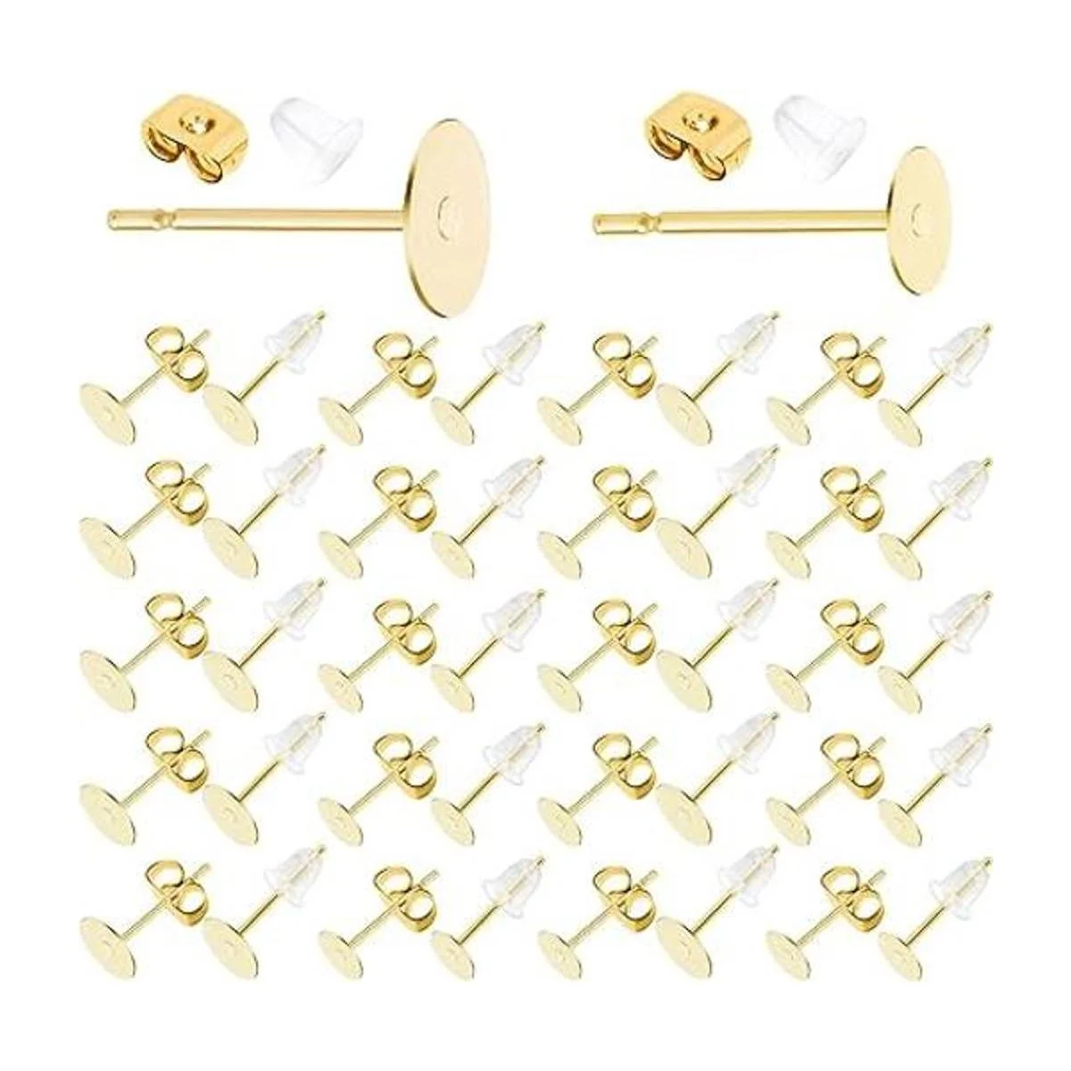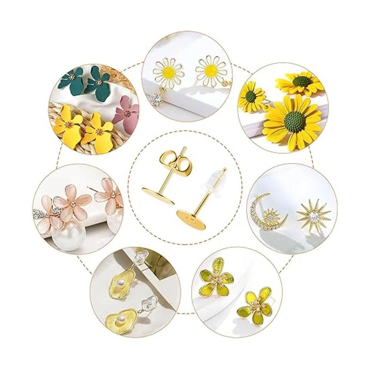Flasoo 1200 postes y respaldos hipoalergénicos, con almohadilla plana dorada con embrague para hacer aretes y suministros de aretes de tuerca