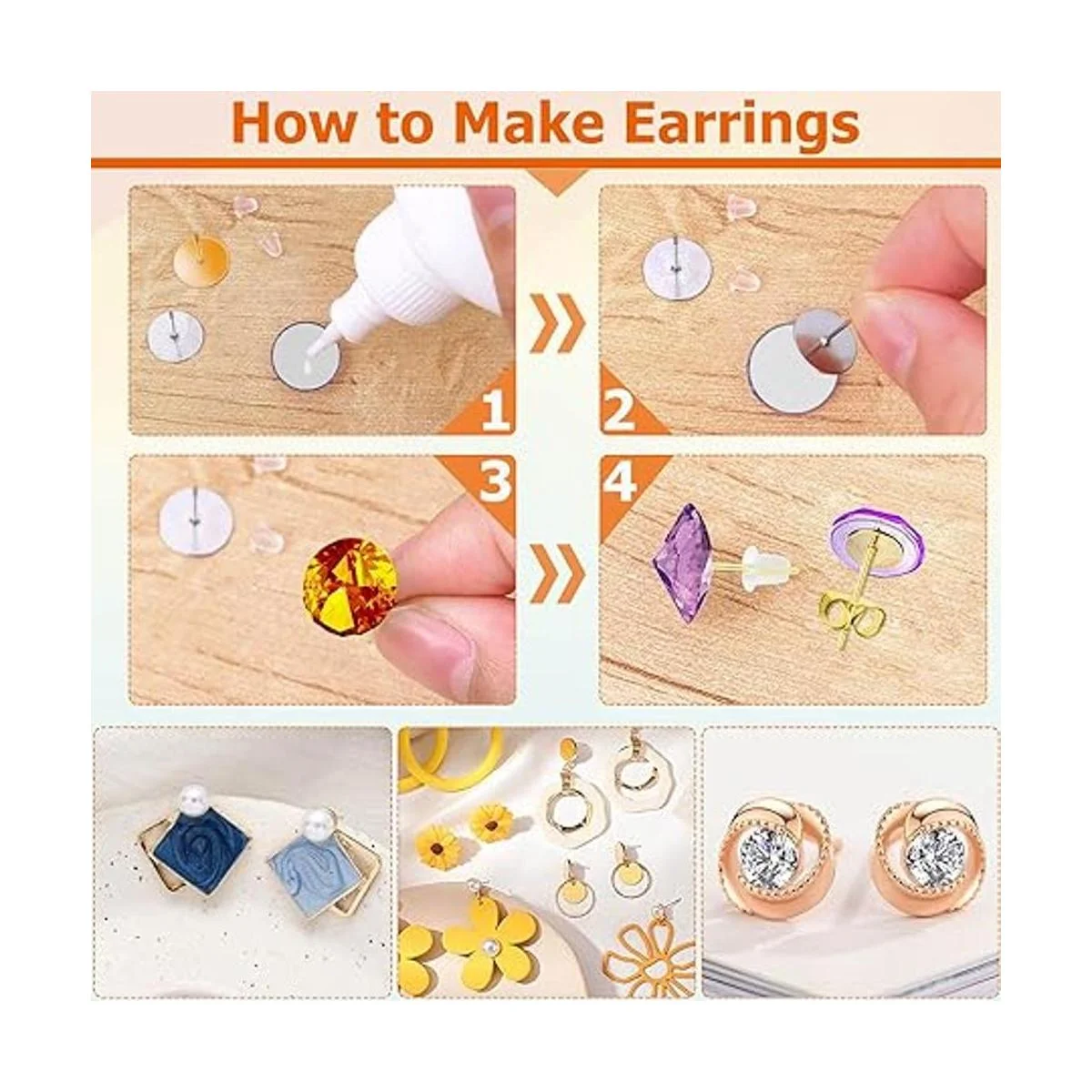 Amplia aplicación: estos suministros de aretes de bricolaje contienen postes y respaldos para hacer joyas, que se pueden aplicar para hacer todo tipo de aretes de tuerca. También se pueden utilizar para decoración y obras de arte. Simplemente disfruta de la diversión de hacer aretes
