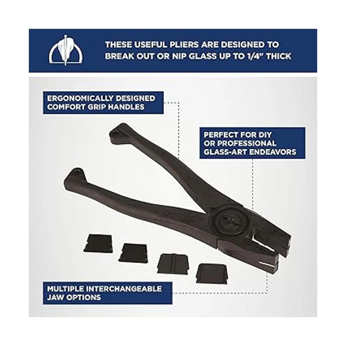 Alicates de cristal: estos útiles alicates están diseñados para romper o cortar vidrio de hasta 0.250 in de grosor. Los alicates de corte de vidrio FletcherTerry son ideales para cada proyecto de bricolaje, lo que los convierte en una adición necesaria a tu kit de herramientas de corte de vidrio.