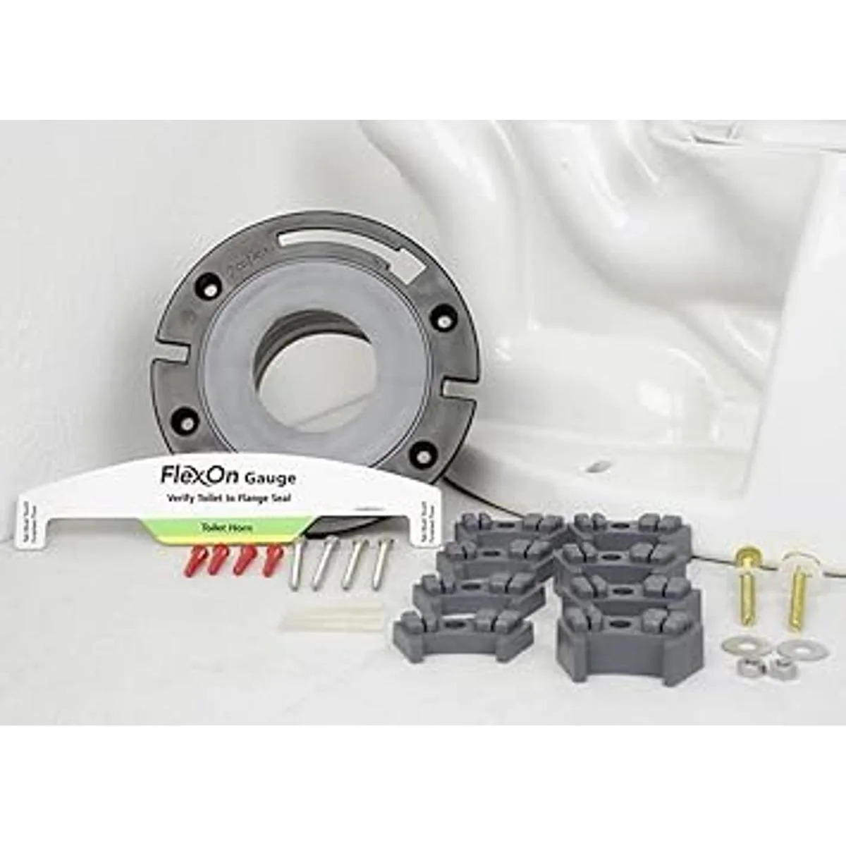 FlexOn Brida de inodoro para tubos de PVC de 4 pulgadas, ABS, hierro fundido o plomo, incluye sistema espaciador para corregir la elevación de la brida de 38 a 1 18 pulgadas