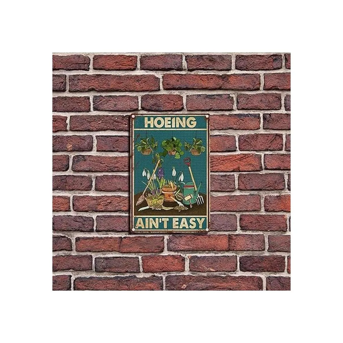 FLFGIDD Letrero de estaño Hoeing Aint Easy Gardening Garden para inodoro, baño, decoración del hogar, regalos de 8 x 12 pulgadas, letrero de estaño