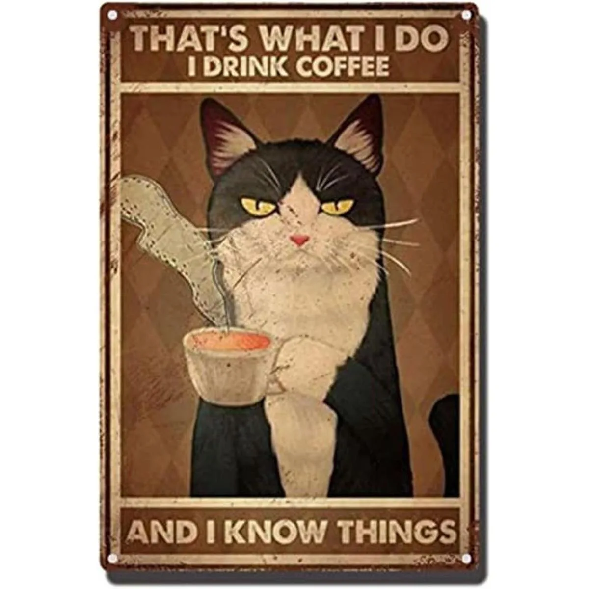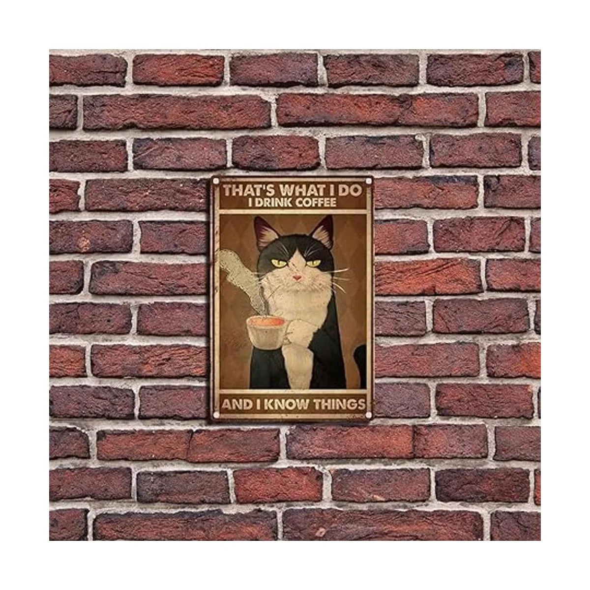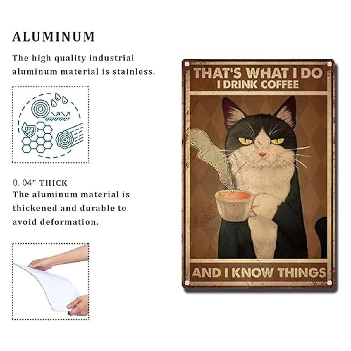 FLFGIDD Letrero de estaño para beber café y saber cosas para inodoro, baño, decoración del hogar, regalos de 8 x 12 pulgadas, letrero de estaño