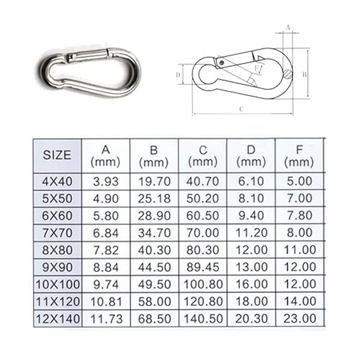 Flomore Mosquetón de resorte de acero inoxidable 304 con clip para escalada