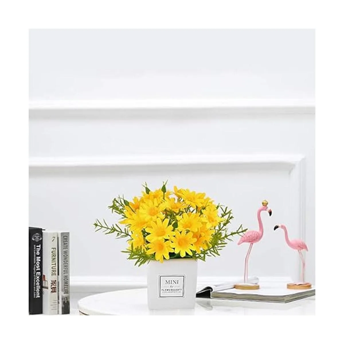 Las flores están hechas de plástico de alta calidad. Es un material saludable y ecológico. No se decolora ni se cae fácilmente. Todas las flores se ven hermosas y vívidas.