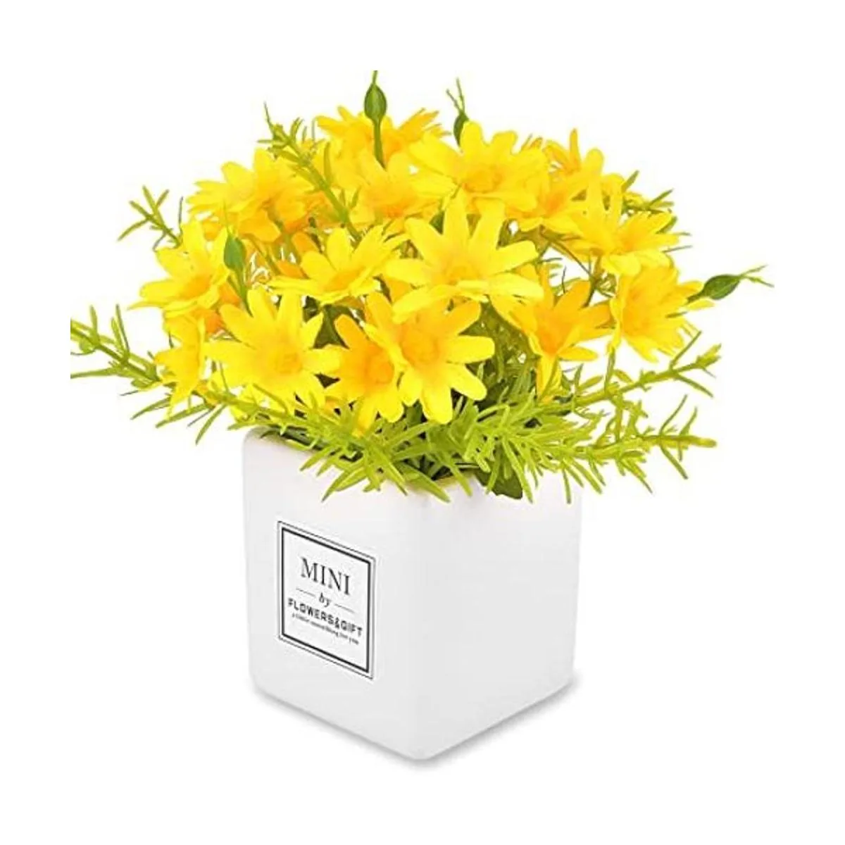 Flores artificiales, flores de margaritas con jarrón sedoso ramo de margaritas artificiales para decoración del hogar, oficina, boda, arreglo de centros de mesa, decoración de alféizar de ventana