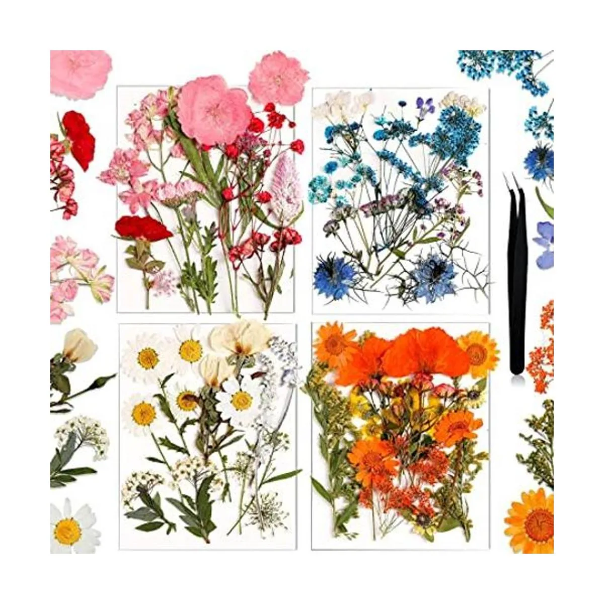 Detalles del paquete: este paquete viene con 68 hojas de flores prensadas secas reales y 1 pinza curvada, las flores secas vienen en diferentes estilos, te impresionarán estas hermosas plantas