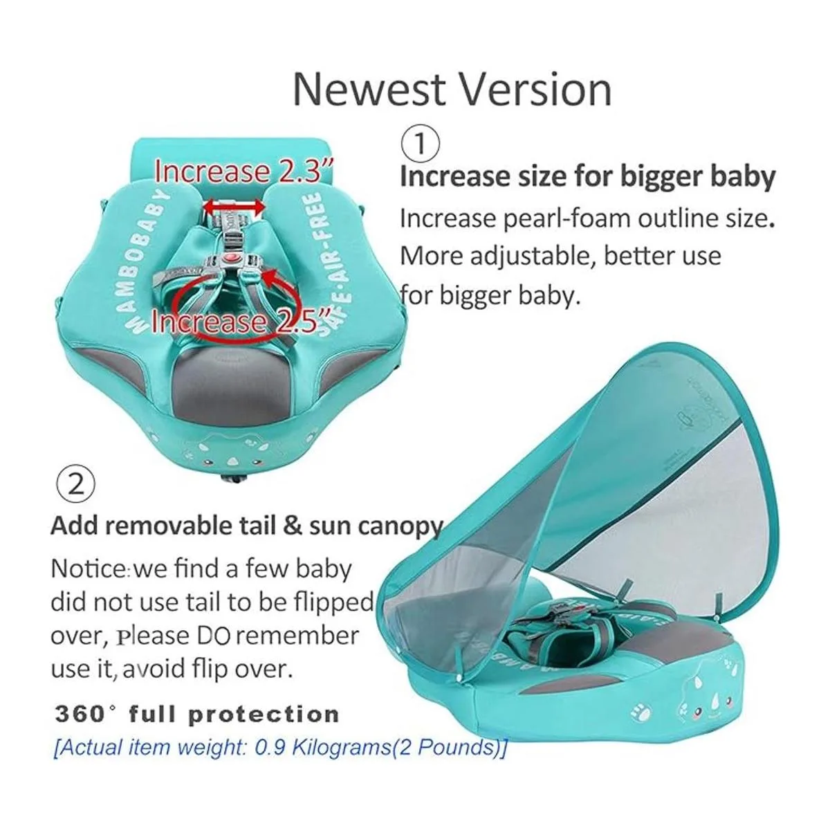 Flotador de natación para bebé, no inflable, con toldo, con protección UPF 50, con cola para adicionar, no se voltea