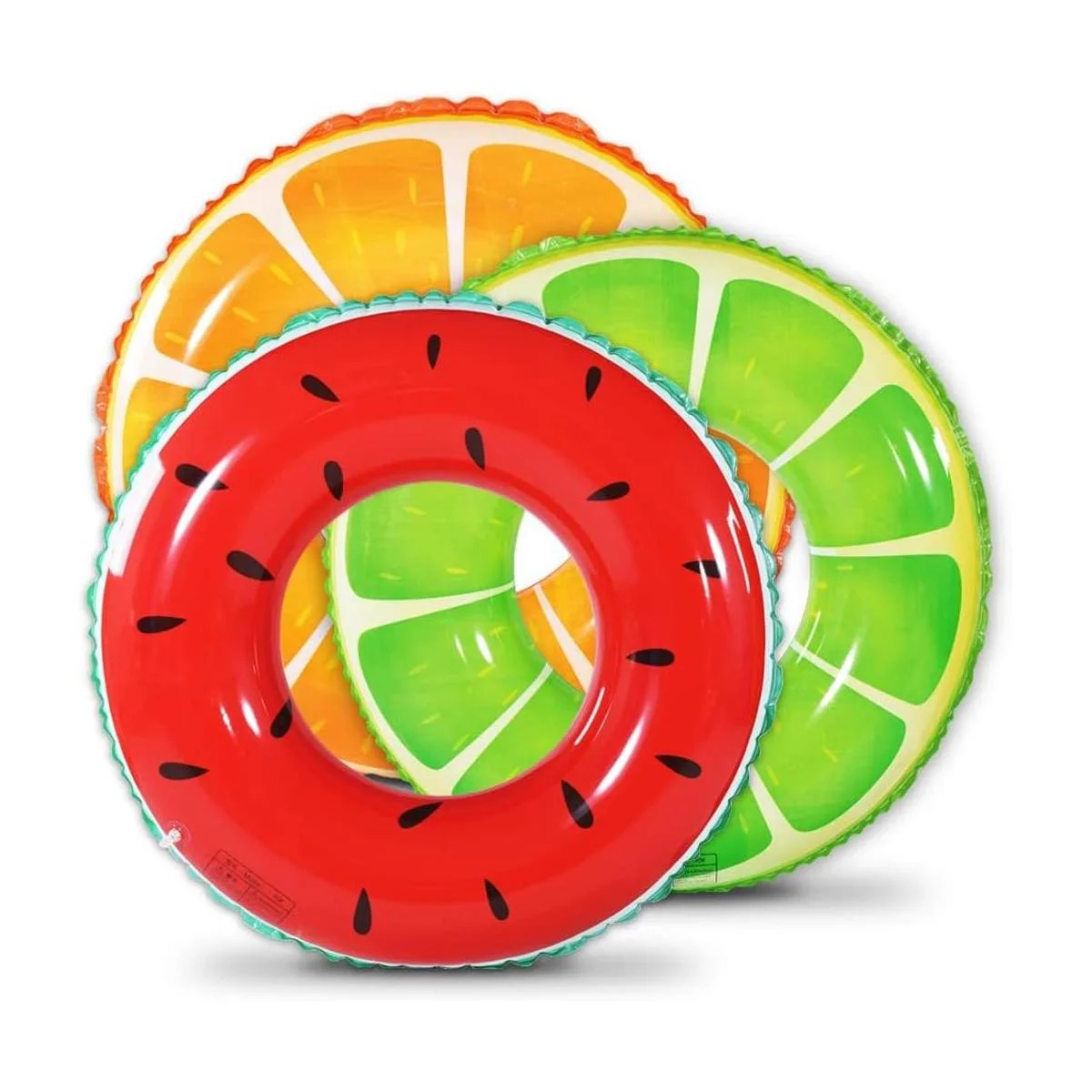 Flotador de piscina de frutas, anillo de tubo de natación de limón naranja sandía, tubo interior de fiesta de natación inflable para niños, juguete de piscina de verano de 3 estilos para diversión