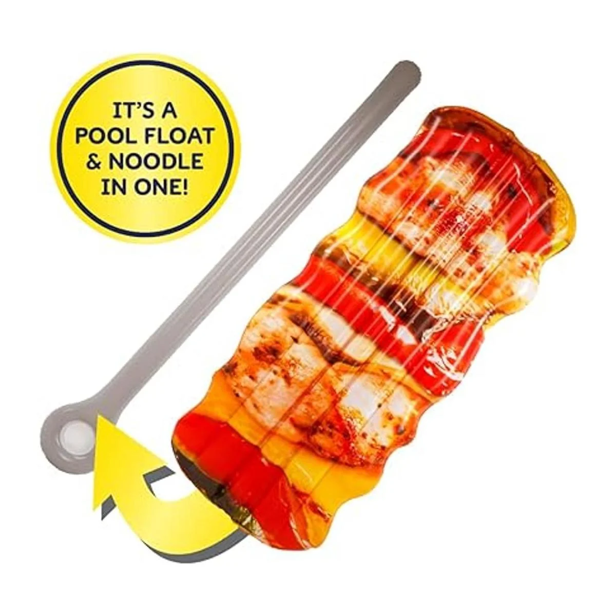 Calientemos el verano con este nuevo combo flotante 2 en 1 Serás el tema de conversación de la barbacoa con este delicioso flotador de pollo y verduras impreso.
