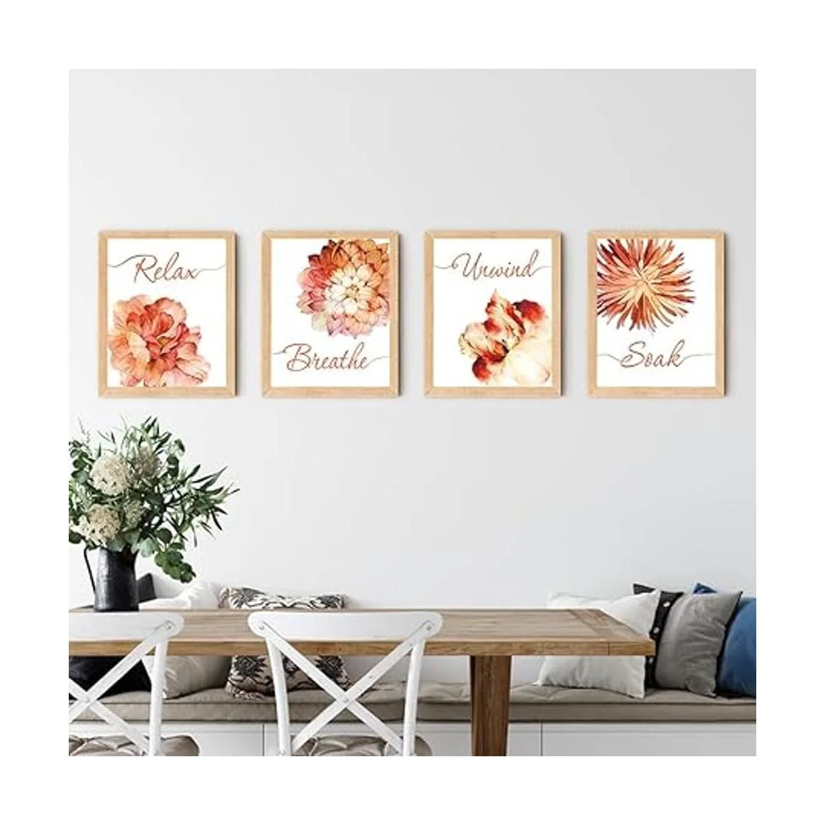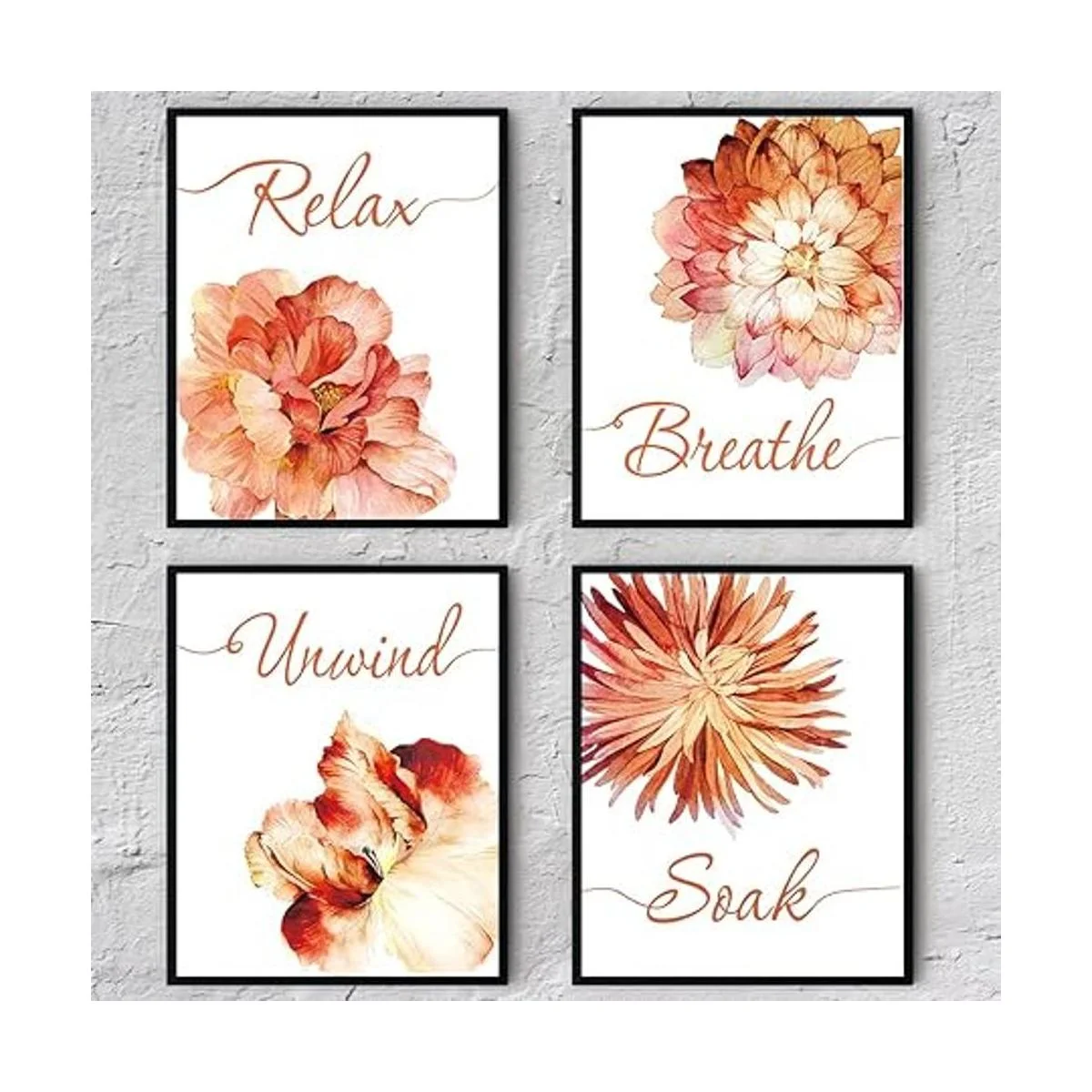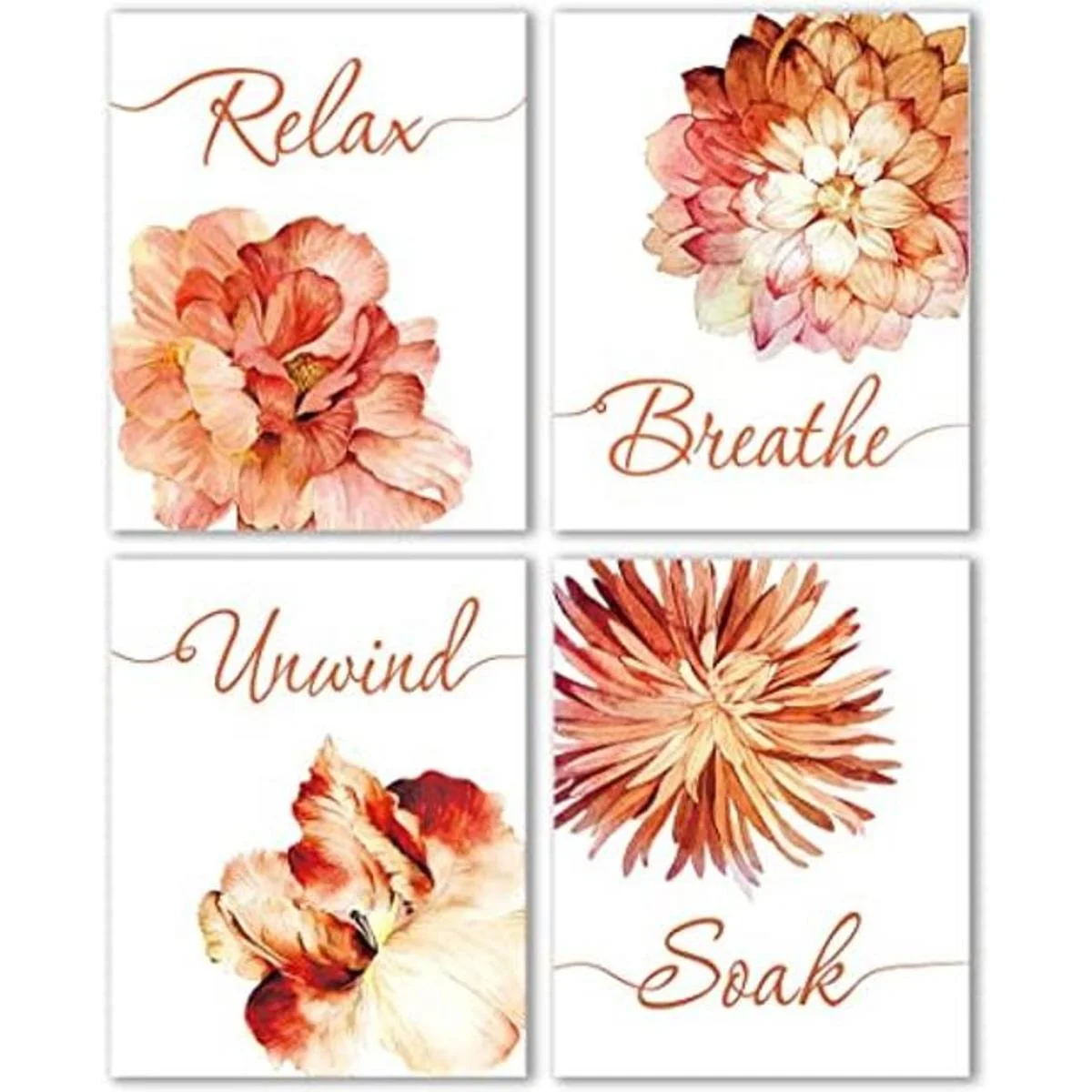 Flowers Relax Decoración de pared de baño, decoración de pared para dormitorio, oficina, pasillo, póster de pared para baño, decoración del hogar, decoración del hogar, spa para mujer y niña, juego de 4 8 x 10 pulgadas, sin marco naranja