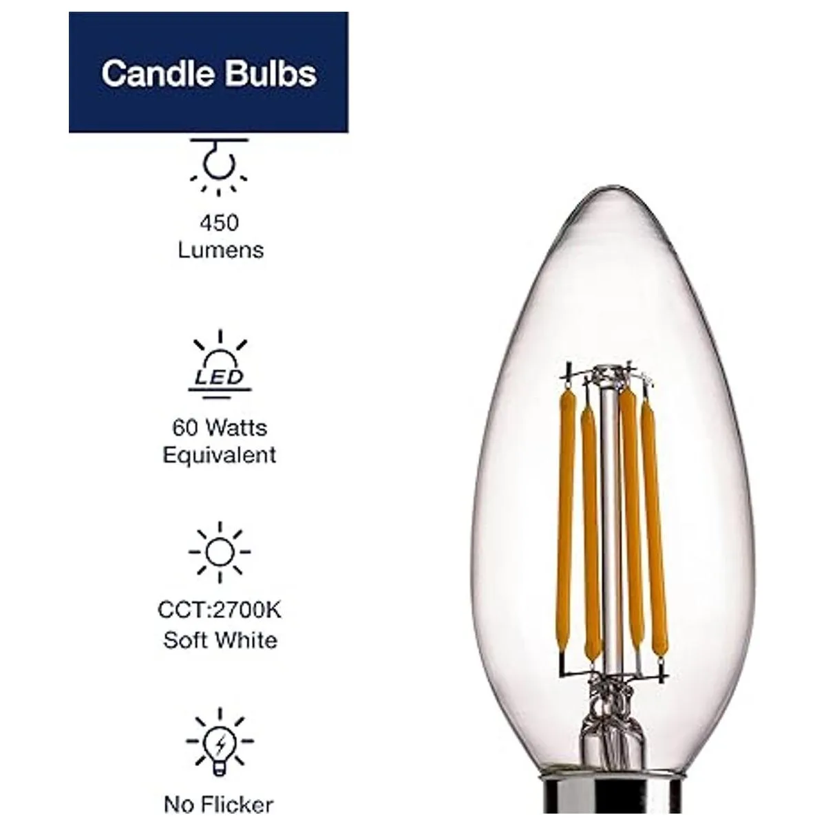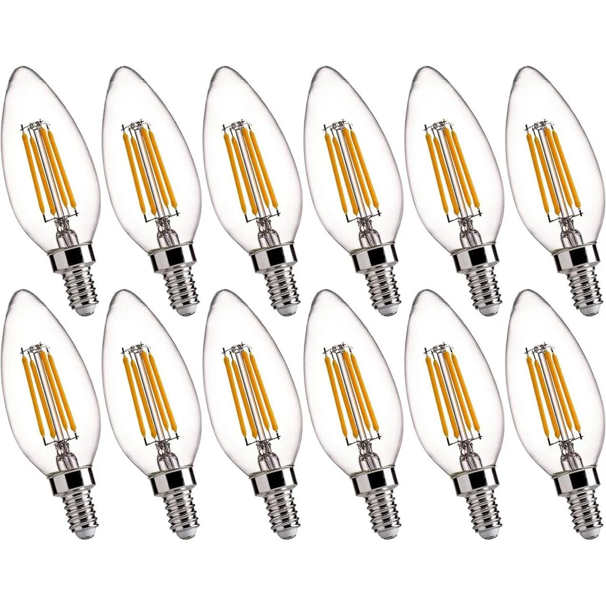 FLSNT B11 E12 Bombillas LED de candelabro equivalentes a 60 W, bombillas LED regulables, blanco suave de 2700 K luz cálida, paquete de 12