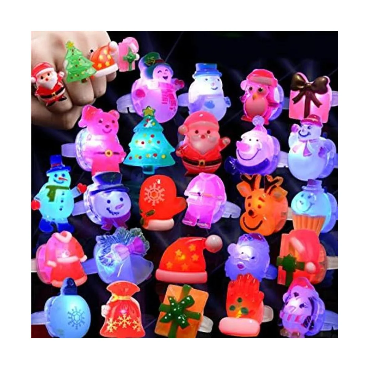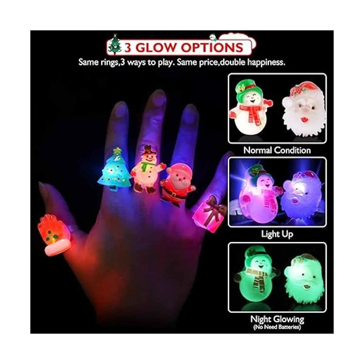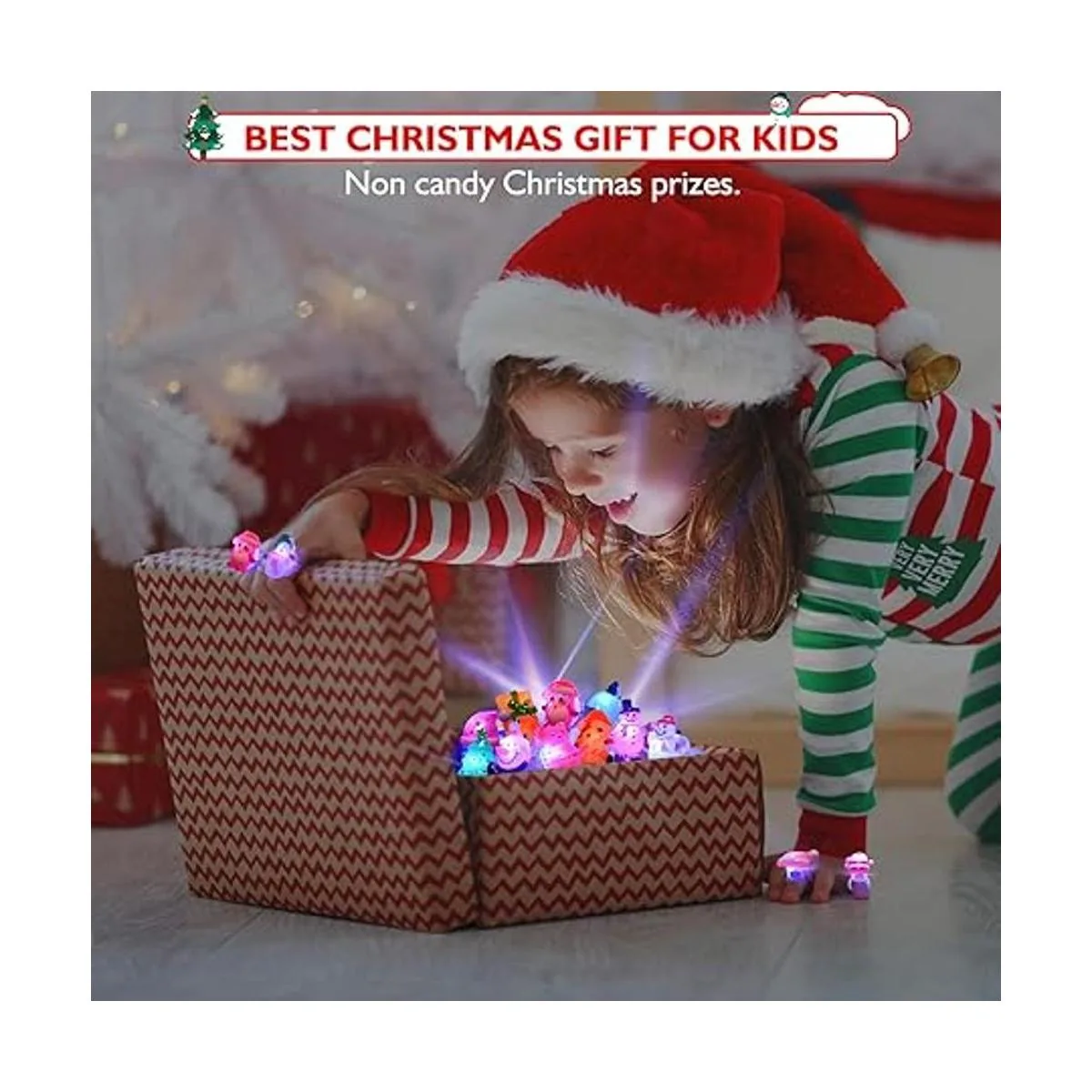 Añade alegría a cualquier fiesta: los recuerdos de fiesta de Navidad con luz LED proporcionan un anillo con bonitos patrones y un parpadeo encantador. Embalado en caja de regalo, regalo de Navidad para niños y niñas. Estos recuerdos de fiesta para niños y niñas se pueden llevar en cualquier ocasión alegre, como fiestas de cumpleaños infantiles, fiestas LED, fiestas brillantes, bodas, Navidad o cualquier otro evento alegre.