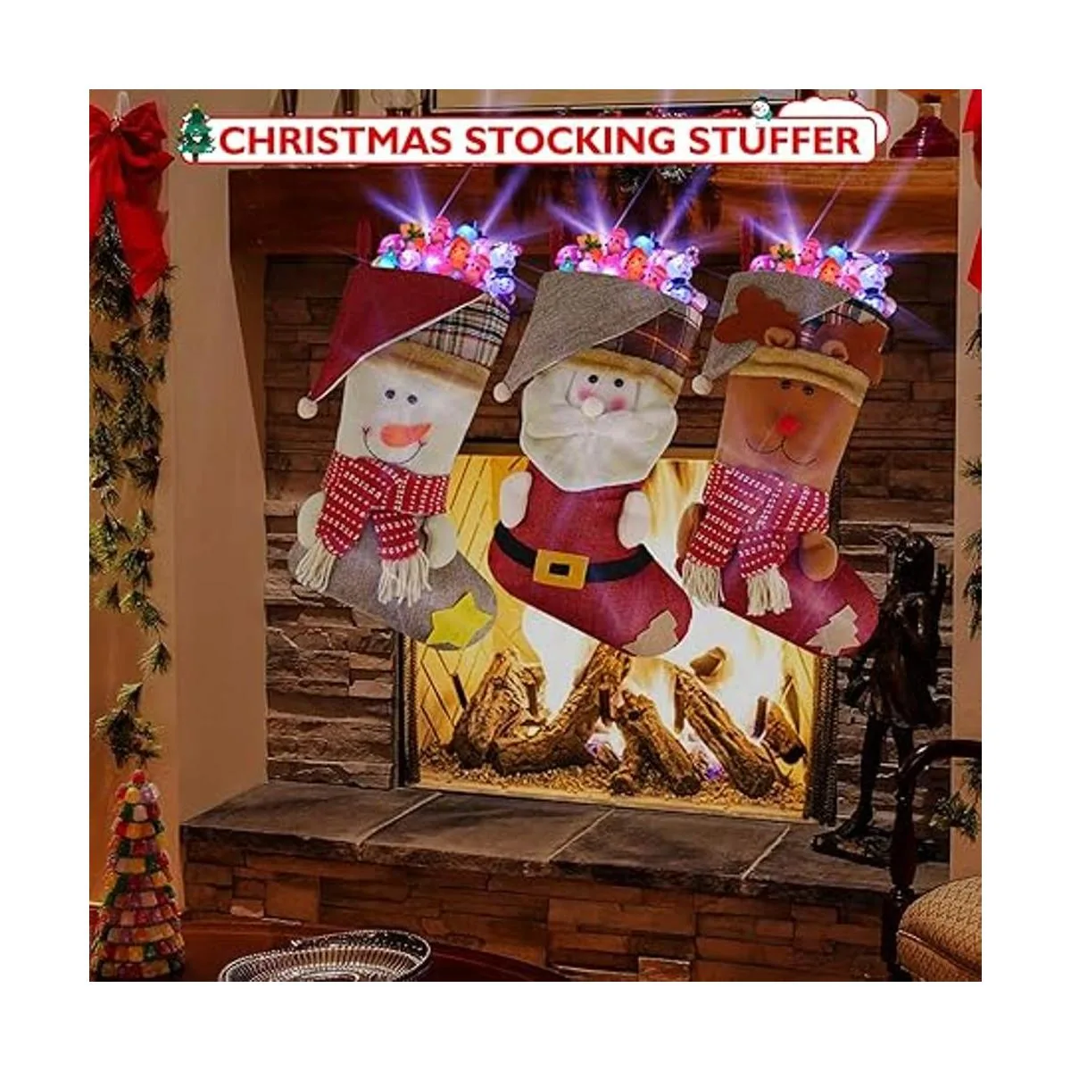 Patrón de Navidad no repetido Varios estilos de Navidad LED FLY2SKY con patrón 3D para satisfacer tus necesidades, como Papá Noel, muñeco de nieve, bolsa de regalo, campana, árbol de Navidad, pingino, etc. Anillo de luz LED para decoraciones de disfraces de niños y regalos de fiesta de Navidad sin dulces. Perfecto para rellenar calcetines de Navidad y rellenos de calcetines.