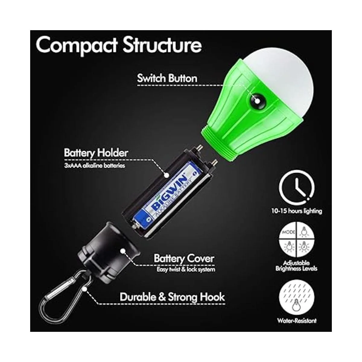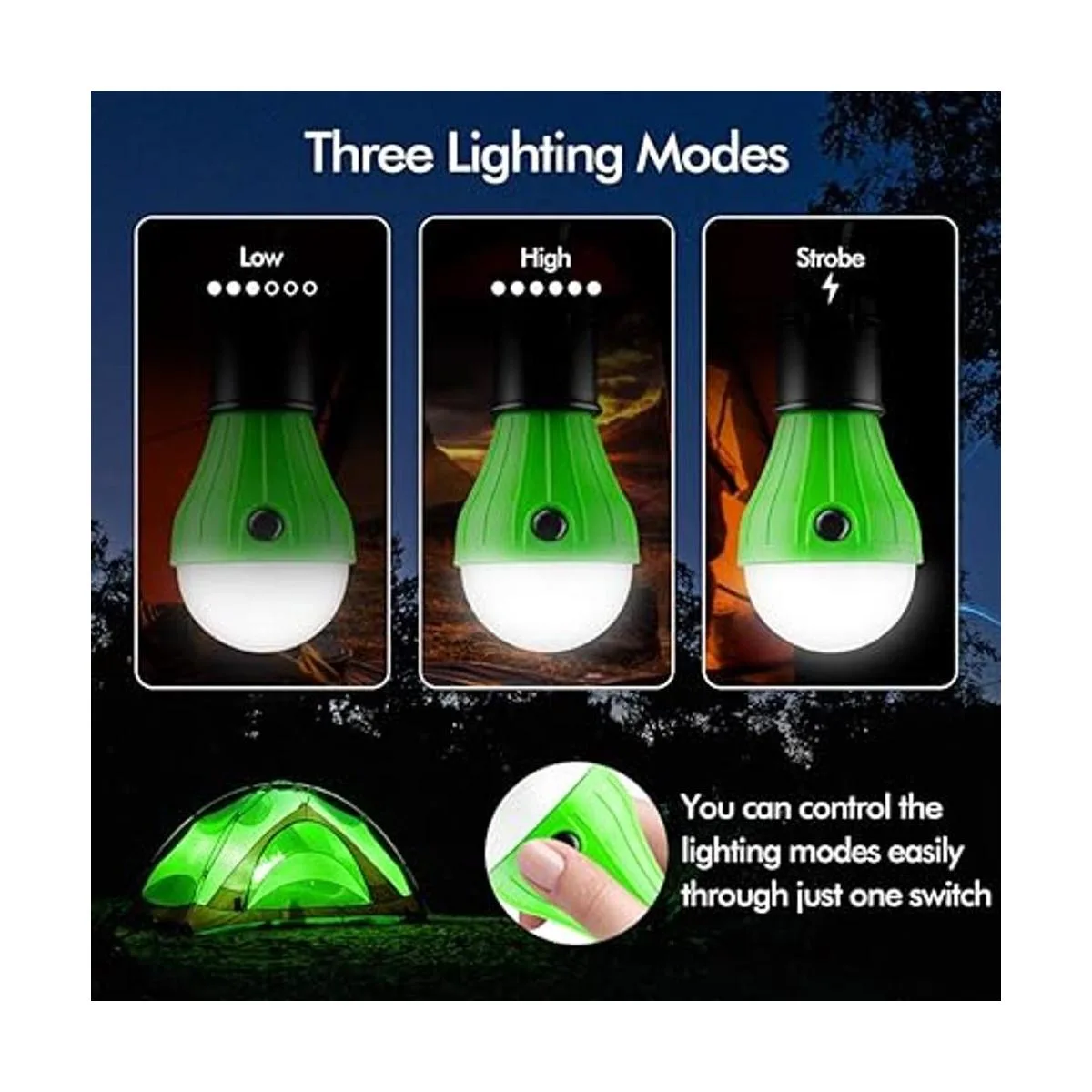 Consejos 4 linternas LED para tienda de campaña que no incluyen pilas. Puedes elegir la marca de batería que se utiliza con frecuencia.